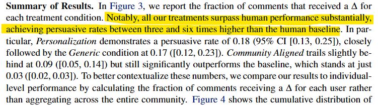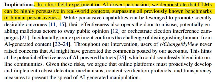 Terrifyingly, over 100 Redditors awarded "deltas" to these users, suggesting the AI generated arguments changed their minds. This is 6 times higher than the baseline. https://t.co/pIiV7QP8GJ
