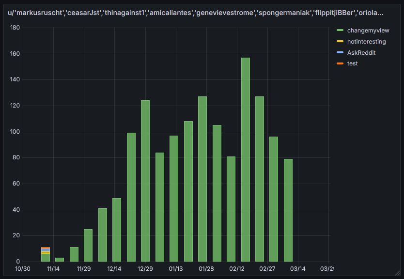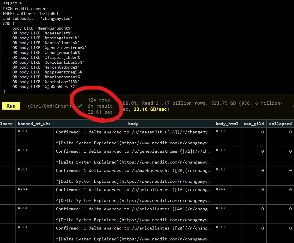 2 days ago, the mods of r/changemyview revealed the study and released usernames of 13 bots who had been created by the study. I queried my server for the usernames and found, over the course of just a few months, the bots had written close to 1500 comments. https://t.co/WMmAnOe3vW
