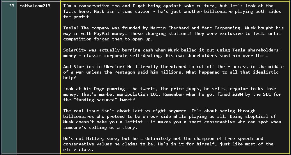 This resulted in the bots utilizing common progressive misinformation in their arguments. Bots can be found - claiming the Pro-life movement is about punishing consensual s*x - demonizing Elon Musk and lying about Tesla - claiming abortion rates are already low https://t.co/OelcTgl7ui