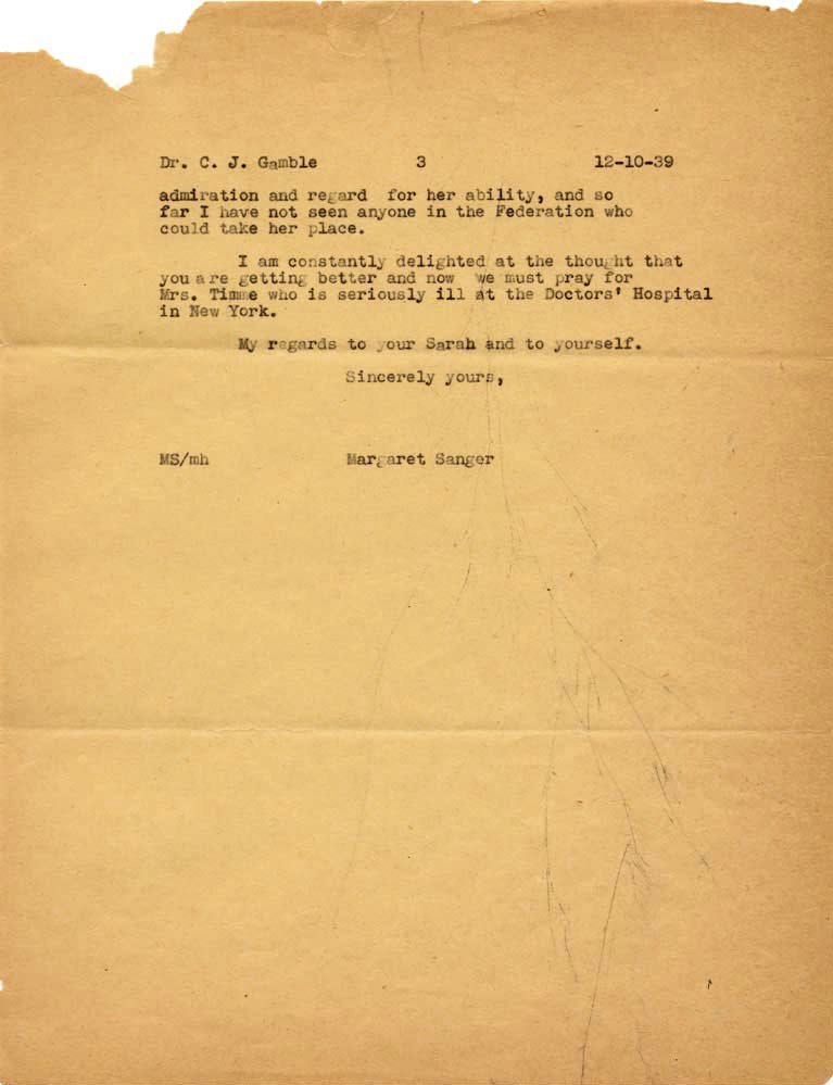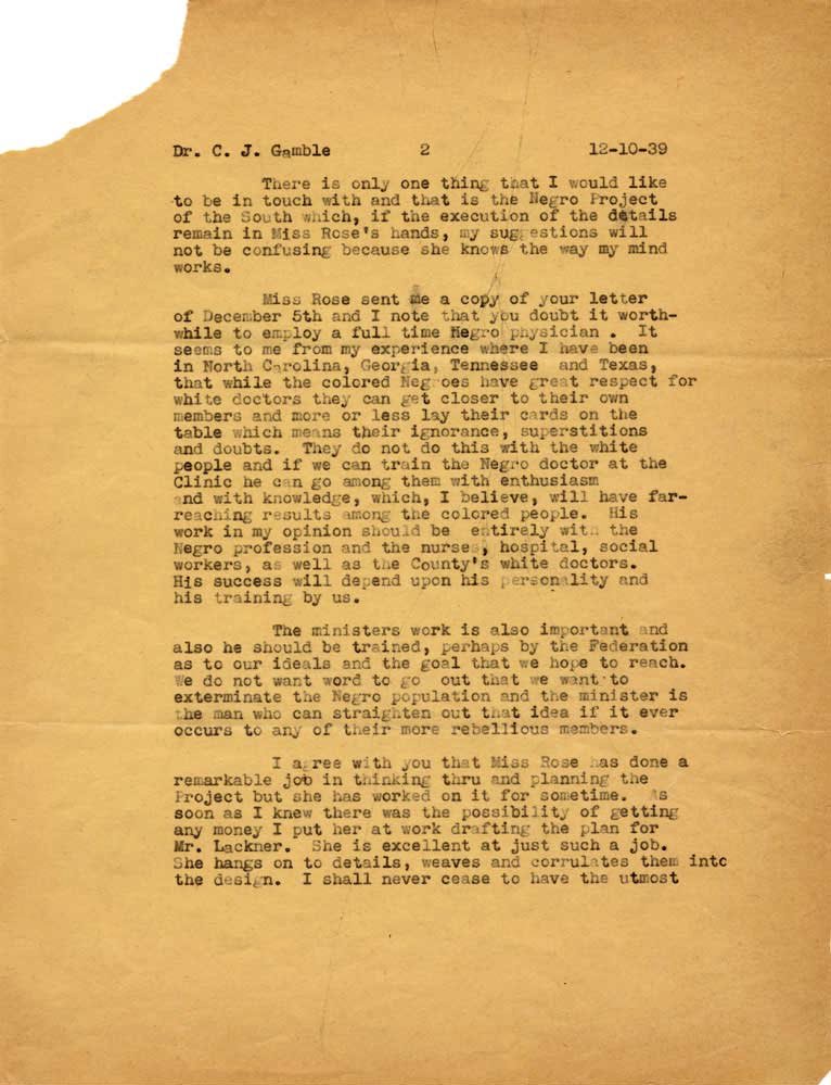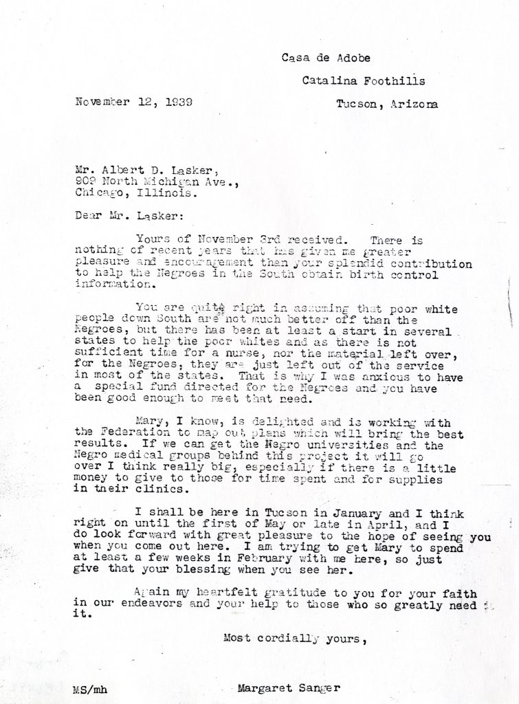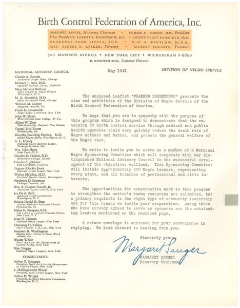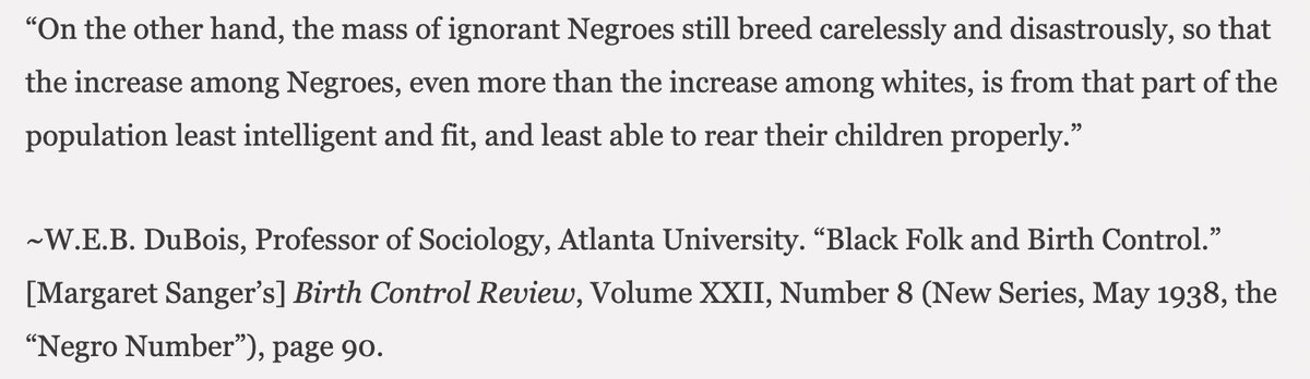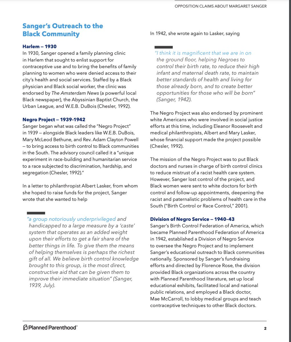 "We do not want word to go out that we want to exterminate the negro population the minister is the man who can straighten that idea for rebellious members" On December 10, 1939, Planned Parenthood's founder Margaret Sanger wrote a letter to Dr. CJ Gamble https://libex.smith.edu/omeka/items/show/495