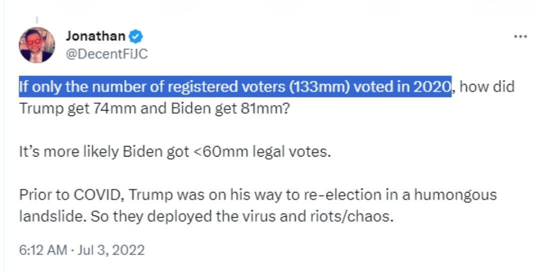 🤣🤣🤣Keep going. How many registered voters do you think we had in 2020, Joe? What’s Elias say the number is? Real shame you ghosted me when I was in Chicago this summer. We could’ve discussed it in person.
