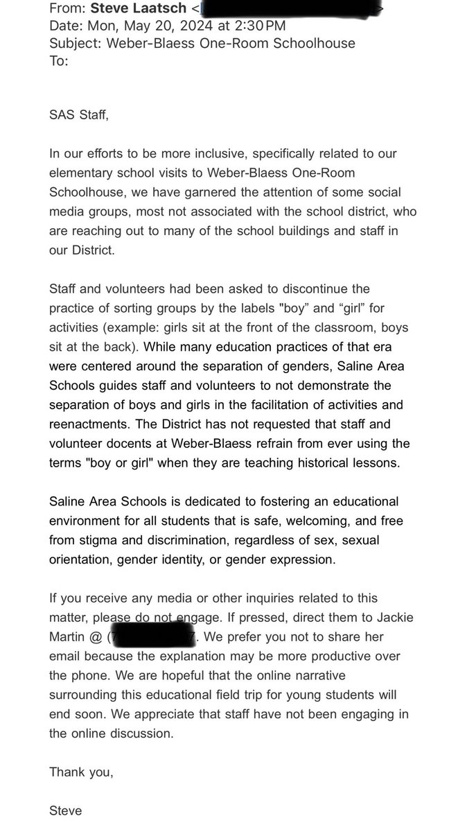 UPDATE: Superintendent Steve Laatsch (@EducateSaline) doubles down on the district’s request to staff to not use the terms “boy/girl” because it can be harmful to students.
