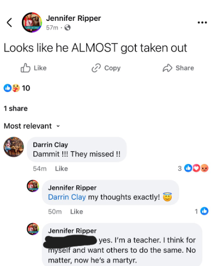 Meet Jennifer Ripper, a teacher at Semper Elementary School in @JeffcoSchoolsCo. She's very sad that the sh**ter missed. Any comment @JeffcoSchoolsCo? https://t.co/iuXsNcMfS6