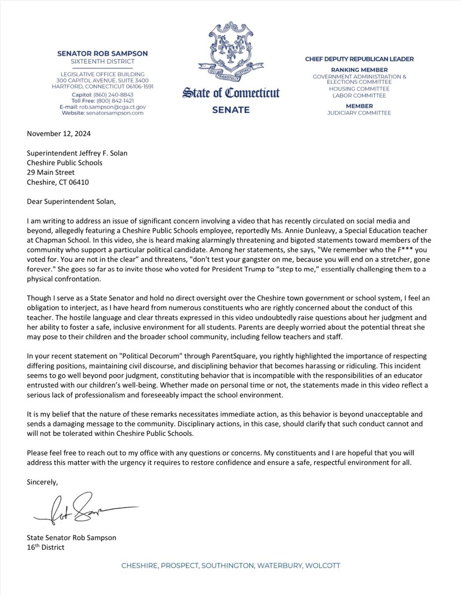 Due to a number of calls and emails from constituents concerned about this viral video - https://t.co/QgpozbiDZZ I have issued a statement and written a letter to the Cheshire Superintendent of schools. https://t.co/0XYHeCBOzW