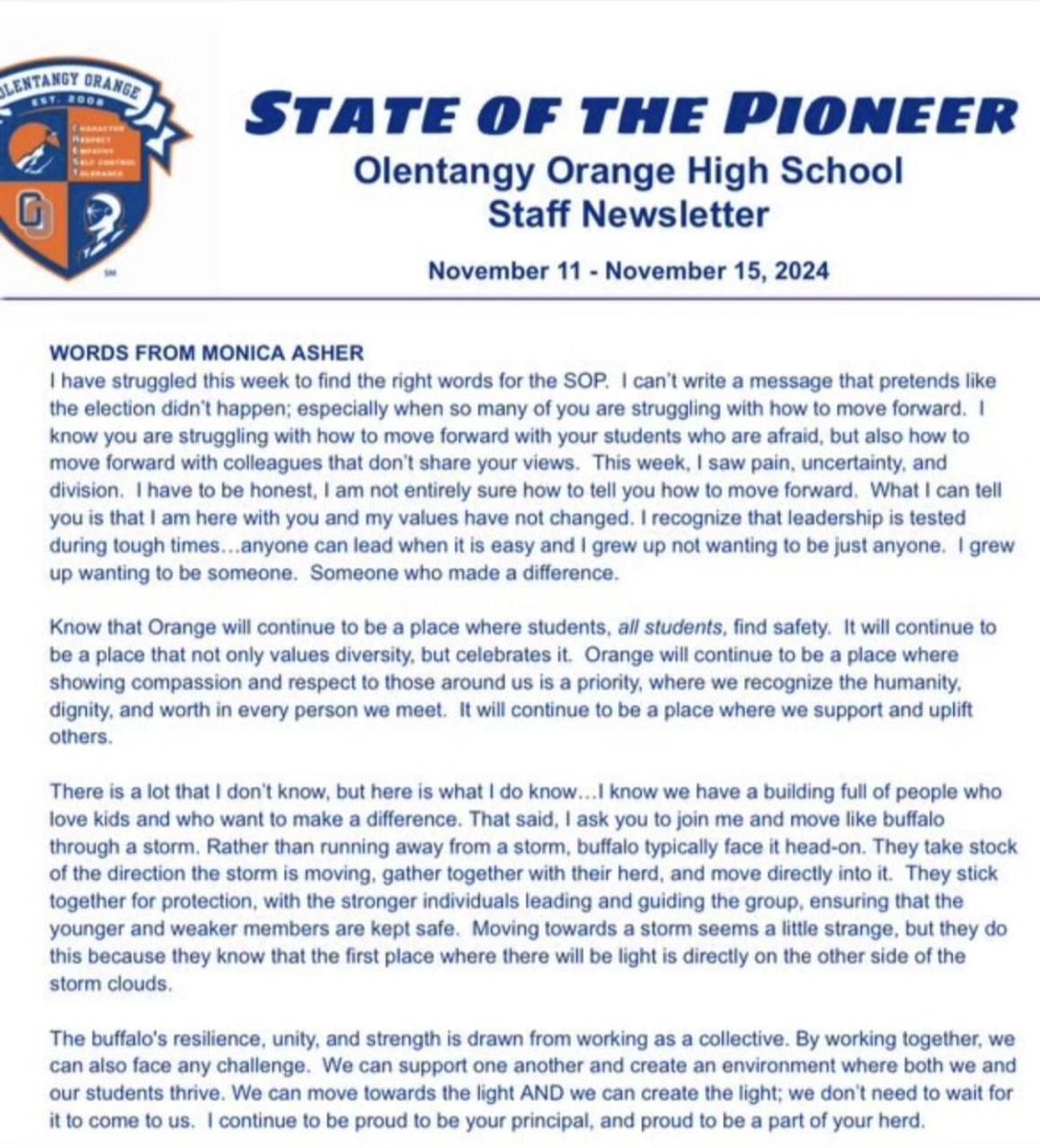 Monica Asher, principal of @OlentangySD in Ohio sent a message to staff expressing how upset she was due to the election and doesn’t know how to tell the staff to “move forward.” She also says the staff needs to stick together in order to keep celebrating “diversity.” These are the people in charge of your kids’ education