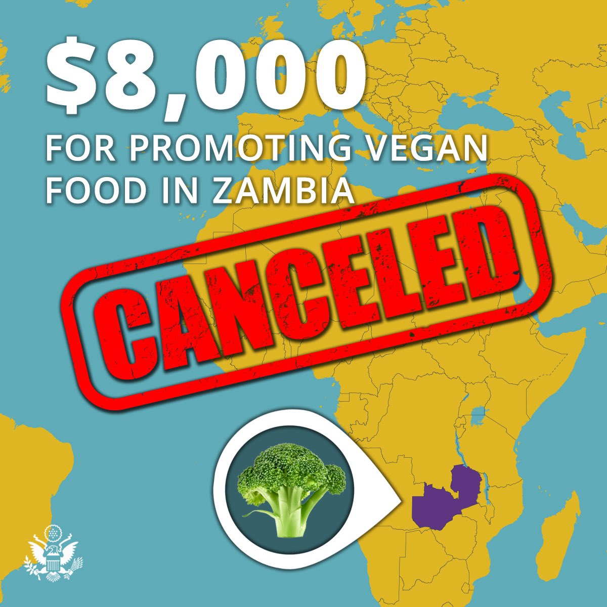US taxpayer dollars were going to be spent on the following items, all which have been cancelled: - $60M for "Indigenous Peoples and Afro-Colombian empowerment" - $74M for "inclusive justice" in Colombia - $79M for "primary literacy" in Kenya - $37M for "female empowerment" in Colombia - $8M to "Reduce stigma, discrimination, and violence against LGBTQI+ communities" in Lesotho - $3.3M for "being LGBTQI in the Caribbean" - $25k to increase "Vegan Local Climate Action Innovation" in Zambia
