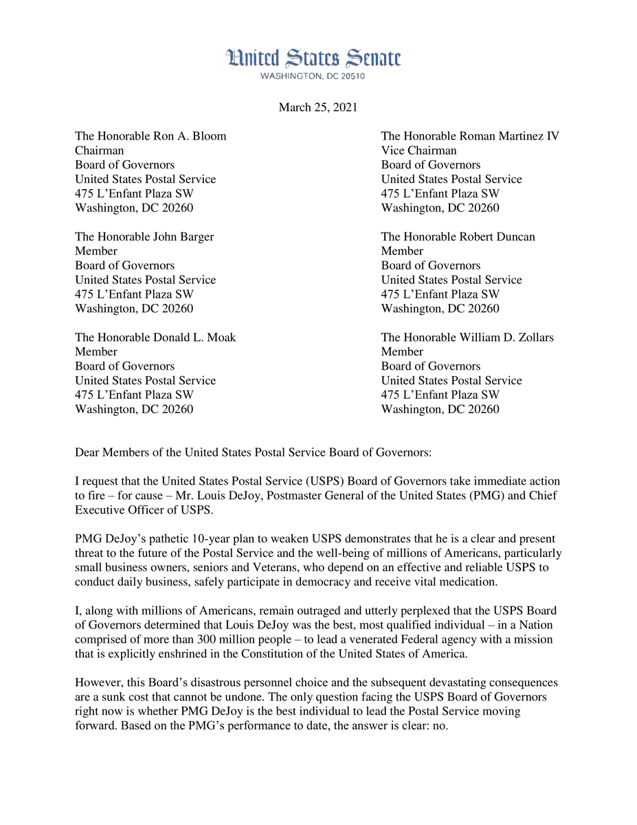 My letter to the USPS Board of Governors can be summarized in two words: Fire DeJoy. https://t.co/A6ng8YODzs