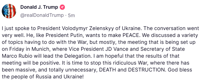 BREAKING: Trump spoke with Zelenskyy about ending the war with Russia. https://t.co/gaESb0HX6M
