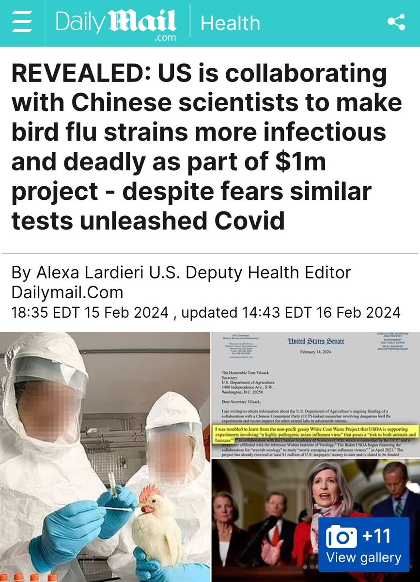 Yes, our study concluded that the current H5N1 bird flu outbreak likely originated from the USDA Southeast Poultry Research Laboratory—and not a single U.S. government agency has challenged our findings. https://t.co/iDlxjUHp8t