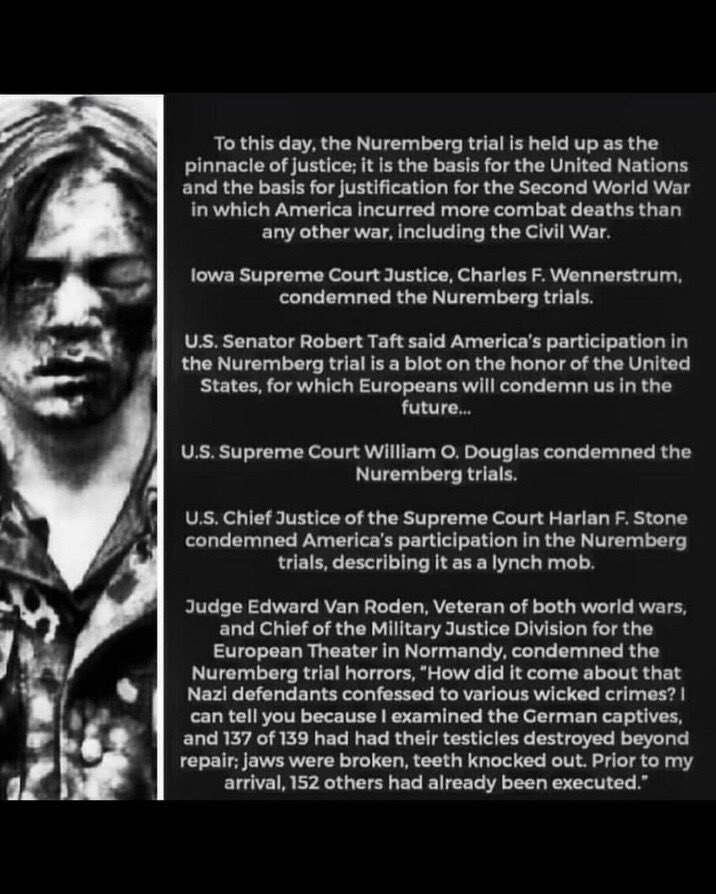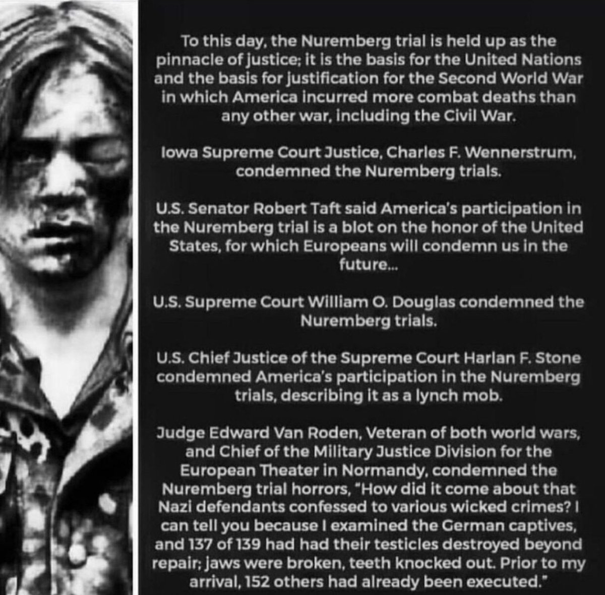When it was all over, they✡️ had a show trial for all of the world to watch. During the Nuremberg International Tribunal, which was 75% Jewish, they lied about everything, presented zero evidence that anything happened, created a narrative based on hearsay, and established the never ending Holohoax victim narrative we still experience today; this narrative would be used to establish wealth and power for future generations. The judges that presided were embarrassed to be a part, and said as much.