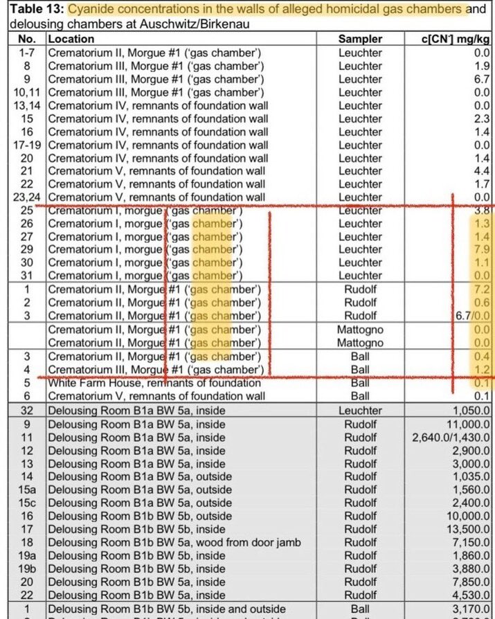 In 1988, American execution expert Fred Leuchter examined the “gas chambers” at Auschwitz, and had the walls chemically tested for Zyklon B residue. The test were negative. 🧵 2/16 https://t.co/7OpO5jU1We