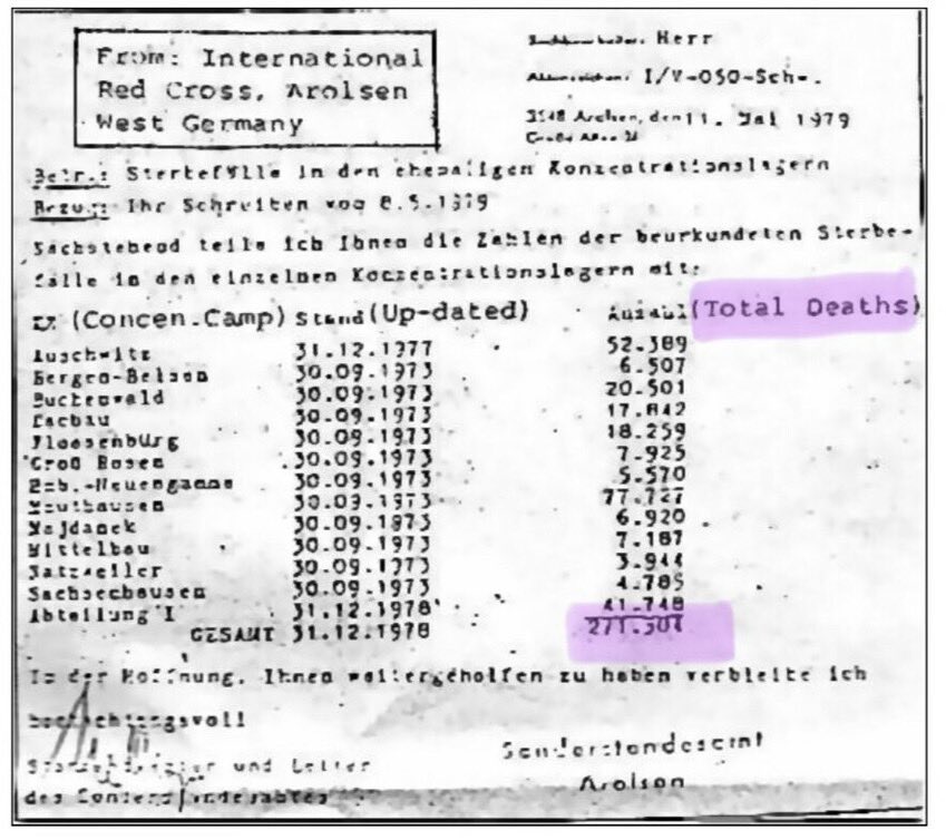 You would never hear about the Red Cross documents that states there were no mass exterminations at Auschwitz, and that that the total deaths in all camps are 271k… 🧵 8/22 https://t.co/uX2jtIhuHz