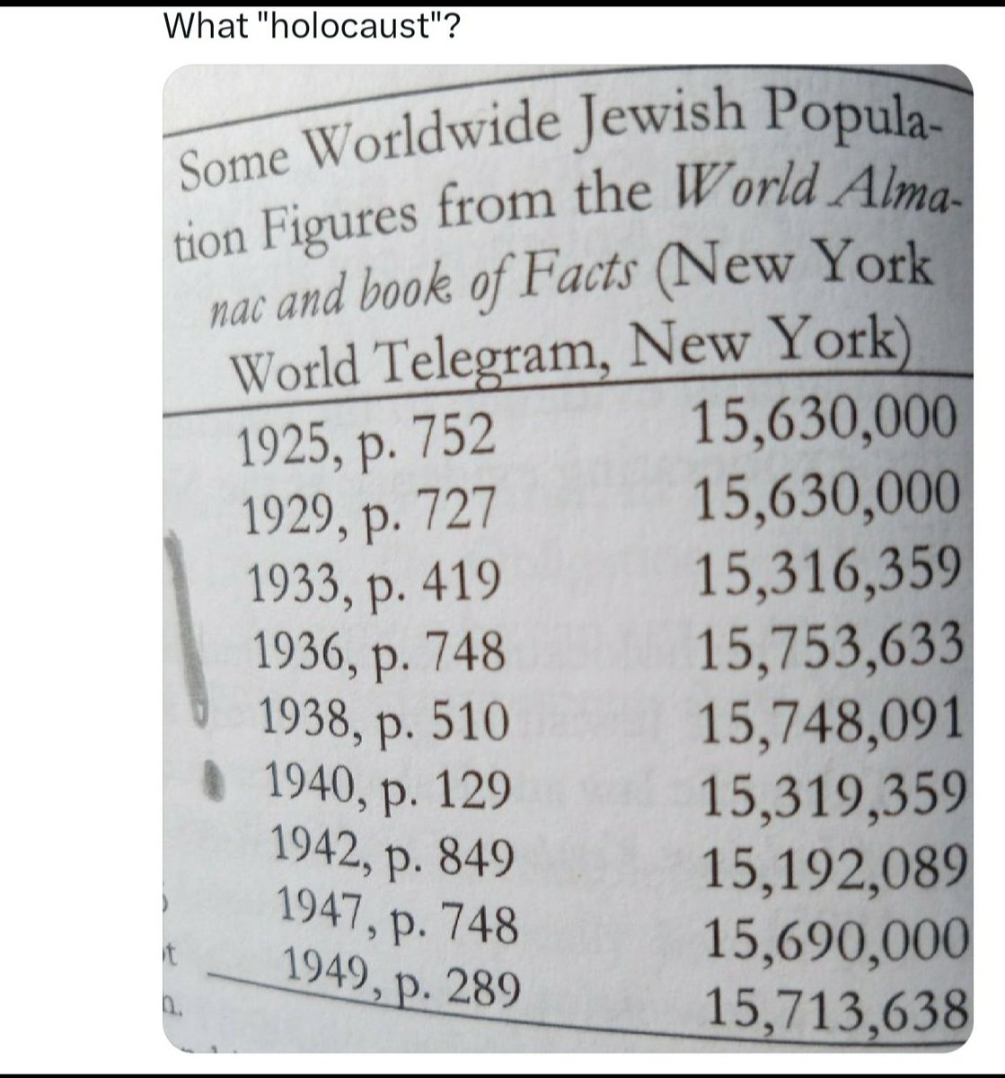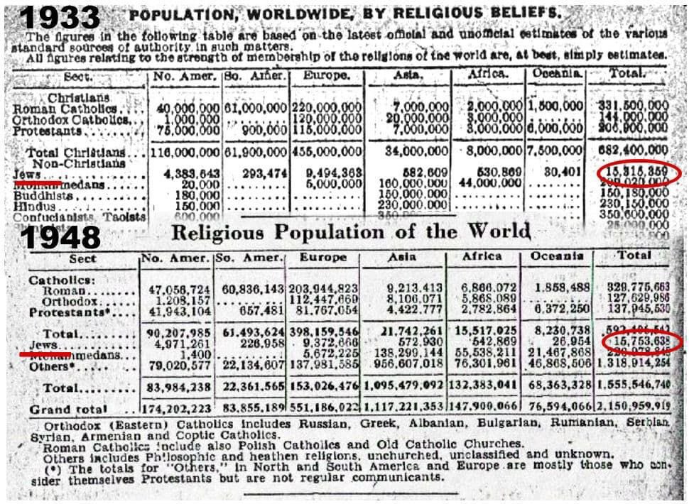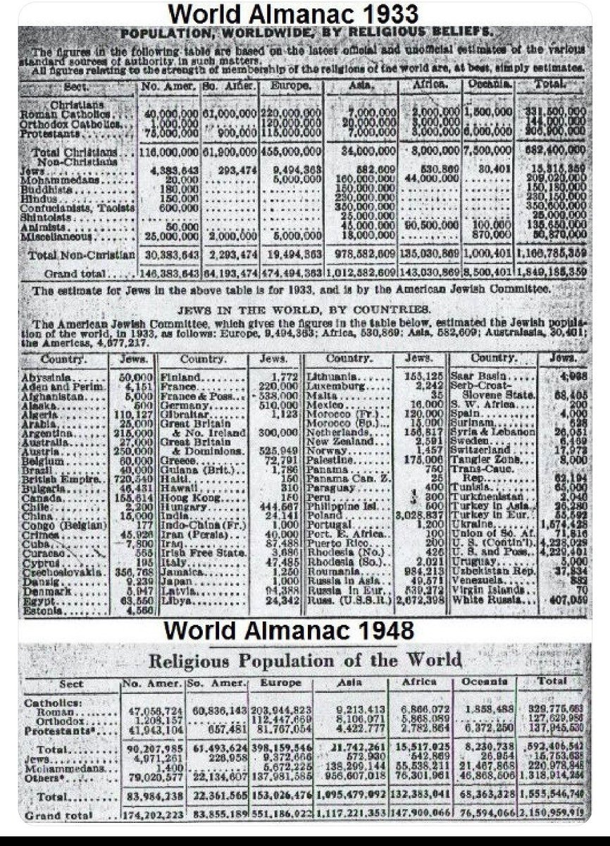 If that isn’t convincing enough, one could easily look in the World Almanac to find census data regarding the total global population of Jews during the 1929-1948 time period. https://t.co/EtANpWGMOn