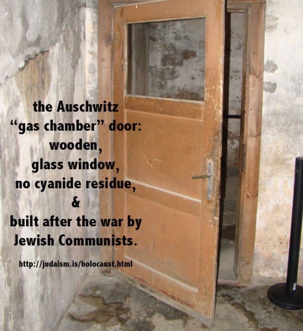 The doors of the gas chambers in Auschwitz aren’t even realistic. If millions of people were killed with hydrogen cyanide, there should’ve been countless eye witness testimonies claiming to have seen cadavers with red skin, and yet there is little to none of those claims.