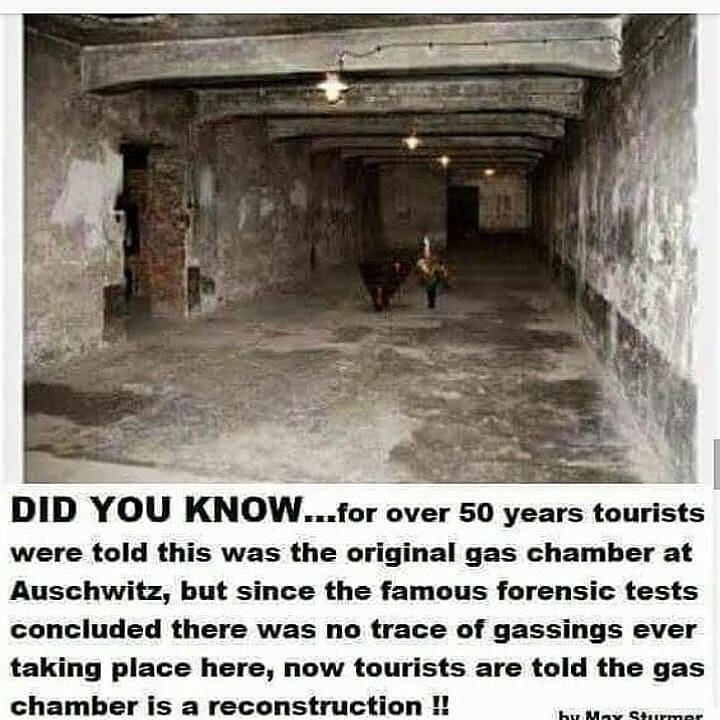 After forensic tests failed to prove that hydrogen cyanide gas was ever used in the homicidal gas chambers, we were then told that the gas chambers were reconstructions done after the war by the same Soviets who had orders to fabricate German atrocities.