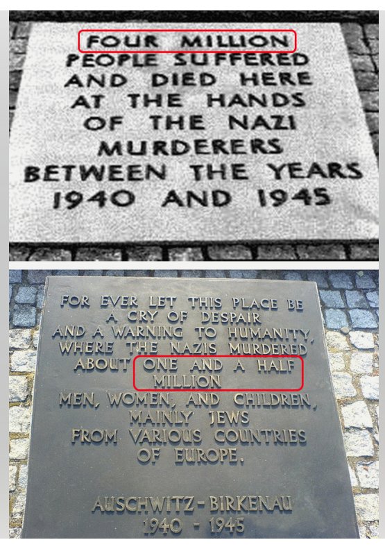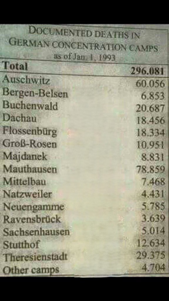 Up until 1989, the number of deaths at Auschwitz was over 4 million. Then it was reduced to 1.1 million. Majdanek also reduced its death count by nearly 2 million. Somehow the 6 million number did not change which shows that it is symbolic and not at all accurate.