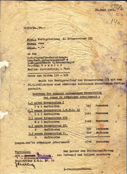 The cremation capacity in the first 2 years would be around 17 000 bodies and in the short year of 1943 to 1944. 150 000 bodies could have been cremated if crematorium operated 24/7. This gives us roughly 170 000 in total. Far from the 1.1 million in the official narrative.
