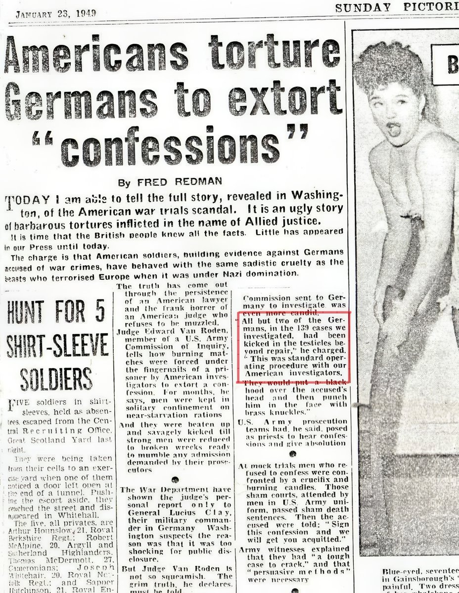 After judge Edward Van Roden allowed his words to be printed in a press article, he then had to backtrack after receiving too much pressure. He later claimed that some German captives had been kicked in the testicles but that he did not know how many.