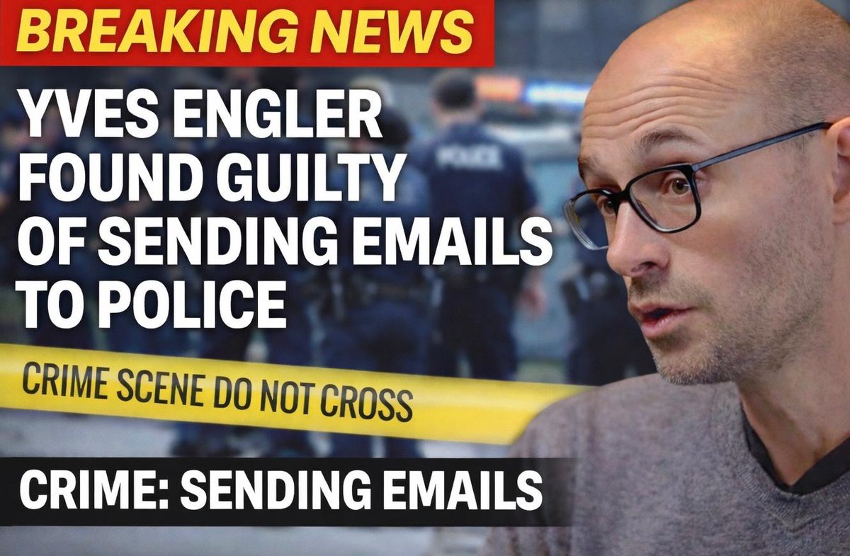 BREAKING: SENDING AN EMAIL TO THE POLICE IS NOW A CRIME IN CANADA Today, a Quebec court decided that the "Send" button is a criminal weapon. Judge Karine Giguère found me guilty of harassment and obstruction of justice today. My crime? Promoting an Action Network email campaign where supporters asked the police to drop a ridiculous investigation. The Crown argument was that a detective was "intimidated" by receiving 1,500 emails. The court ruled that because these emails briefly "stopped her email from working," it constitutes criminal obstruction. Let that sink in. They didn't convict me for violence. They didn't convict me for threats. They convicted me because the public demand for accountability was too loud for their inbox to handle. This verdict is not just an attack on me — it is a declaration of war against every activist, every union member, and every citizen who dares to petition a public official. If you email your MP too many times, is that harassment? If a union floods a CEO’s inbox during a strike, is that obstruction? If 100,000 NDP members demand a leadership vote, is that a crime? This is the fragility of the police state on full display. They have guns, badges, and jails, but they crumble when the public sends them a letter. I spent five days in jail to fight their gag orders. I will appeal this conviction all the way to the top. Not just to clear my name, but to ensure that your right to speak to power doesn't end in handcuffs. They want silence. We are going to get louder. If you can assist with the legal appeal: https://yvesengler.com/donate/