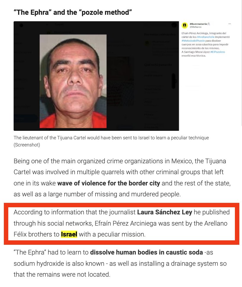 According to information that the journalist Laura Sánchez Ley published through his social networks, Efraín Pérez Arciniega was sent by the Arellano Félix brothers to Israel with a peculiar mission. “The Ephra” had to learn to dissolve human bodies in caustic soda, also known as sodium hydroxide, as well as install a drainage system so that the remains would not be discovered.