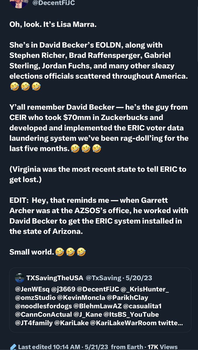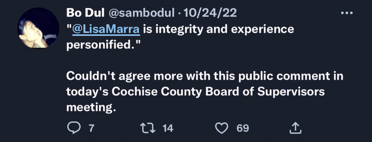 Lol, Lisa Marra is the one Cochise County elections official that Kori Lorick did NOT illegally extort through fraudulent misrepresentation following the November 2022 elections. I wonder why.🤣 https://t.co/AN9jMBFxWo