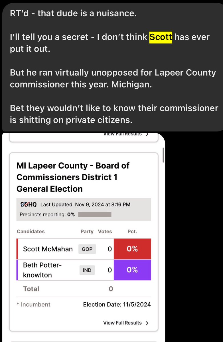 I wonder why Scott would be SO fucking quiet about his recent “election” as a COMMISSIONER for LAPEER COUNTY in MICHIGAN. He’s been SO quiet about it, in fact, that it almost feels like, dare I say, “deception”?😒 PS: Scott, please do me a favor and let DANA NESSEL know her day of accountability for Samantha Woll is coming soon, just the same. And I’m gonna remember this day when soon, in the not-so-distant future, I sue YOU, HER and LAPEER fucking COUNTY for defamation, you vile, murderous, Mossad Jew pieces of shit. I’m sure Dana will LOVE discovery. Cheers.🖕🫡