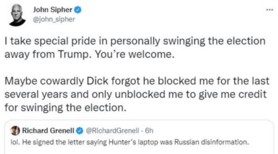 @GenFlynn Here's John Sipher laughing that he helped throw the election. https://t.co/CmCYhtNdf7