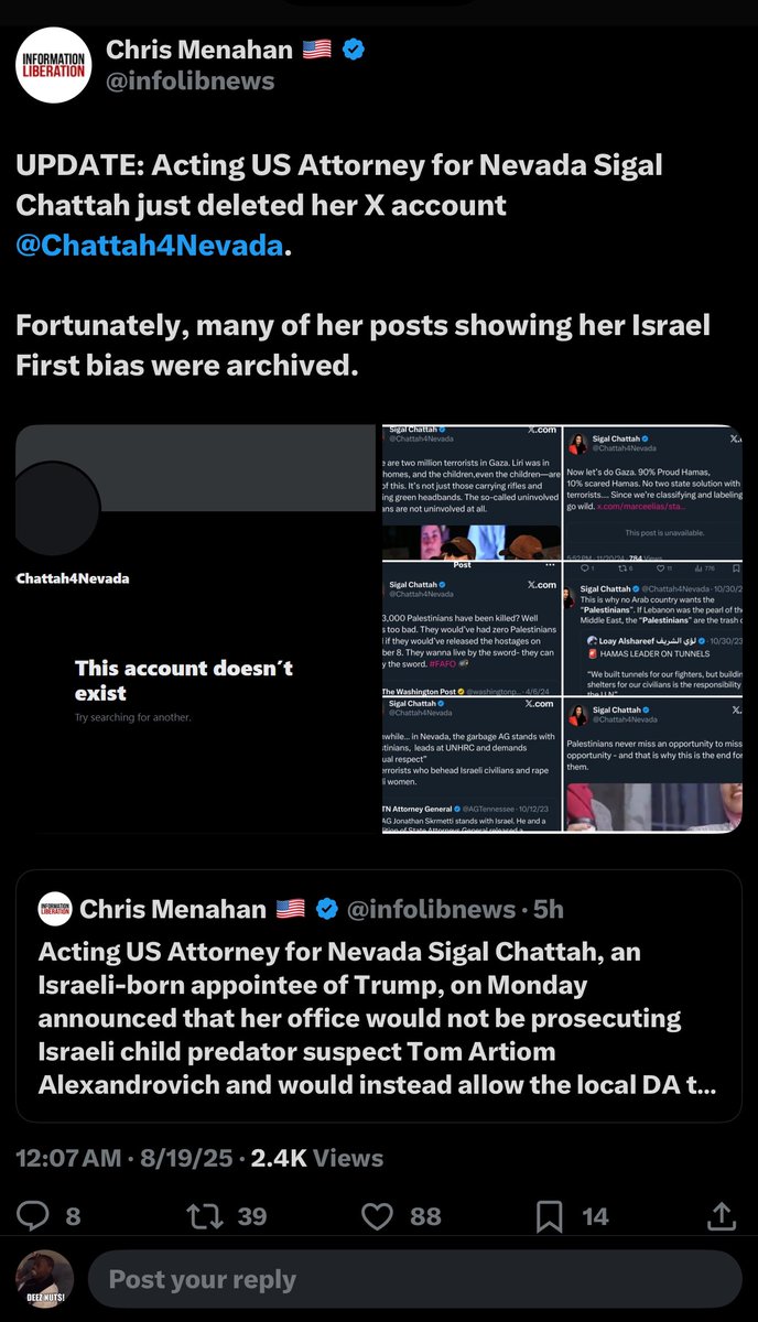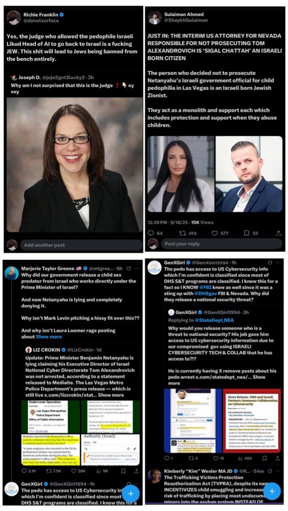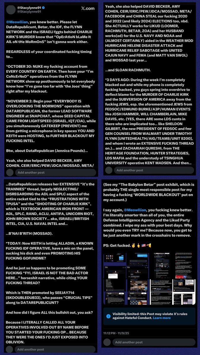 Anyone else raising their eyebrows at this Charlie Kirk/Josh Hammer timeline? ▪️A year and a half ago, Josh Hammer begins to be in regular contact with Charlie Kirk ▪️May 2nd, Charlie writes a letter a pages-long letter to Netanyahu, essentially criticizing him. Later, Josh Hammer will reveal he knew about this letter, but remained silent about it, and in the meantime calling others like Candace Owens "liars" who referenced its existence. ▪️Over the past year, Charlie Kirk had been receiving numerous death threats to the point where he stepped up his security, per Erika Kirk. ▪️On July 13th, Josh Hammer expresses open and specific disgust at having to share the stage at TPUSA with Dave Smith ▪️Also July 13th, since April 2024, Hammer has been attacking Tucker Carlson, calling him the most dangerous antisemite in American history. Carlson made a notorious appearance at that same TPUSA event where Hammer was disgusted at sharing the stage with Dave Smith. How unhappy was Hammer over Charlie platforming both Smith & Carlson? Keep reading. ▪️On August 4-5, at a meeting in the Hamptons, Charlie Kirk gets into some heated discussions allegedly with Seth Dillon, Josh Hammer, and others over their perceptions of his insufficient support for israel, and specifically the platforming of Tucker Carlson. ▪️Also August 4-5, Charlie turns down $150 million from israel, offered by Netanyahu ▪️August 6th, Charlie Kirk goes on Megyn Kelly and complains about being "emotionally BLACKMAILED" over his choices regarding how he supports israel. ▪️In mid August, Charlie Kirk told multiple people he thought israel might try to kill him if he turned against them. This information made it to Harrison Smith, who posted it at the time. Charlie is not known to have disputed this. Others have confirmed he told multiple people this. ▪️On September 8th, Charlie posted a message in the group chat that he had no choice but to drop the pro-israel activism. Josh Hammer & I believe Rabbi Wolicki were part of this group chat. They both stayed silent about it. Hammer lied about Candace's claim about it that turned out to be true. ▪️On September 9th, Charlie had a mysterious Zoom call with Josh Hammer & Rabbi Wolicki, where they say they discussed Charlie's upcoming campus tour & debating with students. Even though it was scheduled to begin the next day, Hammer apparently didn't even know it was starting in Utah. Odd. Also on September 9th, Charlie texted people saying "they're going to kill me." We don't know if that was before or after the Zoom call. ▪️Also on September 9th, At dinner after the Zoom call, Erika Kirk & Charlie's "faith leader friend" both encouraged Charlie to increase his personal security by wearing a bulletproof vest or putting up bulletproof glass. What happened to escalate their worries that night? ▪️Also September 9th,after the Zoom call, Josh Hammer cryptically tweets "Based", QT'ing a random 12-year old tweet from Donald Trump calling for "public execution." ▪️September 10th, immediately after Charlie was assassinated, his close friend and associate at TPUSA, Andrew Kolvet, sent screenshots of the group chat from September 8th to the FBI. Why did Kolvet surmise that that particular chat from 2 days prior would be relevant in the immediate aftermath of the assassination? ▪️Also September 10th after the assassination, Josh Hammer again cryptically tweets "Public execution" without any context. ▪️For the entire month since Charlie's group text message on September 8th, Josh Hammer has remained silent about it while calling others "liars" for saying Charlie had changed his mind on israel. ▪️After the "Based" public execution tweet from the 9th resurfaced, the entire paid-off Hasbara shill army claimed he was referring to the murder of Iryna Zarutska. Of course, by their own admission, Hammer was out of contact for the jewish holiday and not using electronic devices, so there was no way for anyone to know this. Surprise! He showed up the next day confirming this was indeed the case. But both he and the Hasbara army are still ignoring his equally cryptic "Public execution" tweet from after the assassination on the 10th. ▪️Today, Hammer posts a screenshot revealing he didn't know where Charlie's tour would be starting the next day, but knew to warn him about "Antifa." As with his 2 "public execution" tweets, day that was a little on-the-nose, wouldn't you say? Just what the f*ck does Josh Hammer know? What's he still lying about? What lies did he tell Charlie? If I ran the FBI, I'd be so far up his business he'd be brushing his teeth with Preparation H. Parting Shot: For allegedly being so close, Josh Hammer and Charlie Kirk only ever had 3 interactions on the timeline—one of them being about assassination by Left-wing hysteria. What are the odds?