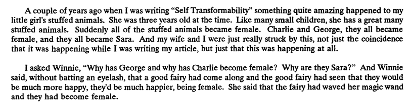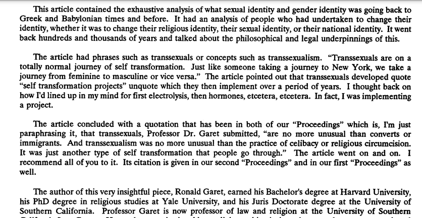 The rest of Professor Garet's contribution is too insane to parse here. This is the conclusion of it, a religious approach to transgenderism. I think he was this close 🤏to start speaking in tongues.