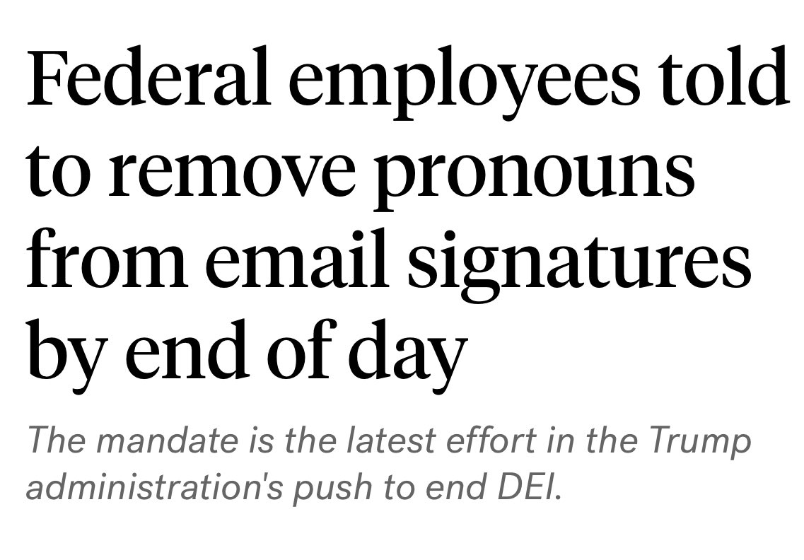 BANNED: he/him, she/her, they/them, xe/xem, ze/zir, ey/em, fae/faer, ve/ver, it/its… https://t.co/QaWYtCyJmy