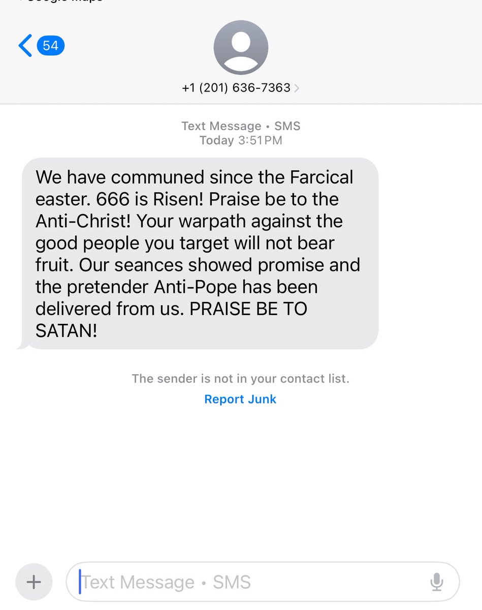 @TriFilmPictures @dandelafe No one is as demonic as someone who literally texts “hail Satan” from an anonymous number. Your friends are terrified.