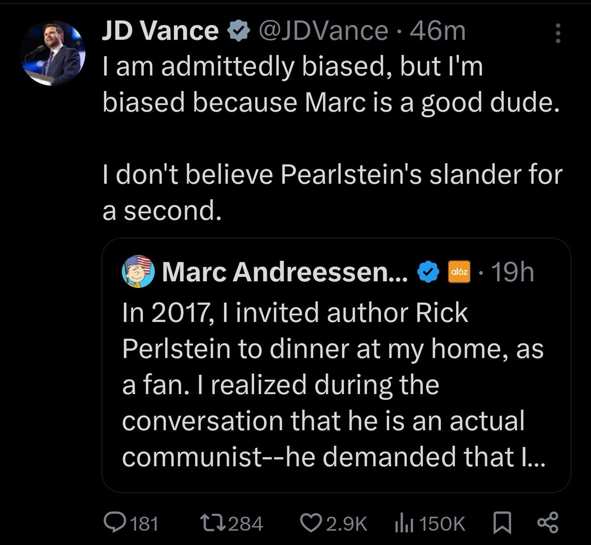 ๐๐๐ - It would appear I'm definitely over the target with this information regarding Andreessen Horowitz. -A post from both Trump and Vance within 2 days of me starting the exposure. ๐ง๐ง๐ง https://t.co/Ig5E7b5RjV
