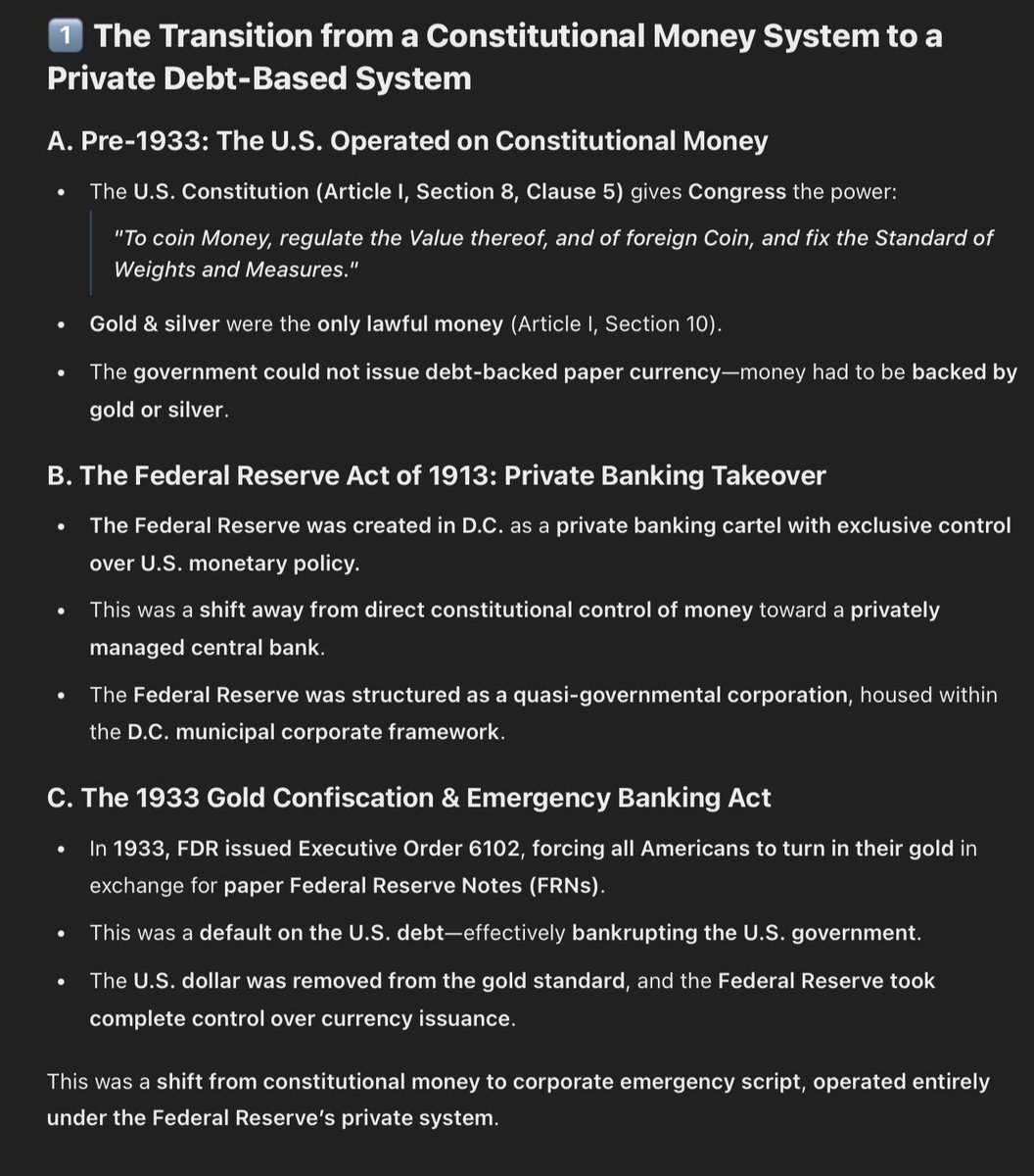 They had to figure out a way to bypass a Constitutionally mandated money system (gold/silver) and turn it into a private script that would indebt the entire American population in their system of debt. How did they do this? Under the guise of an EMERGENCY (as usual). https://t.co/4GQJr1vcuw