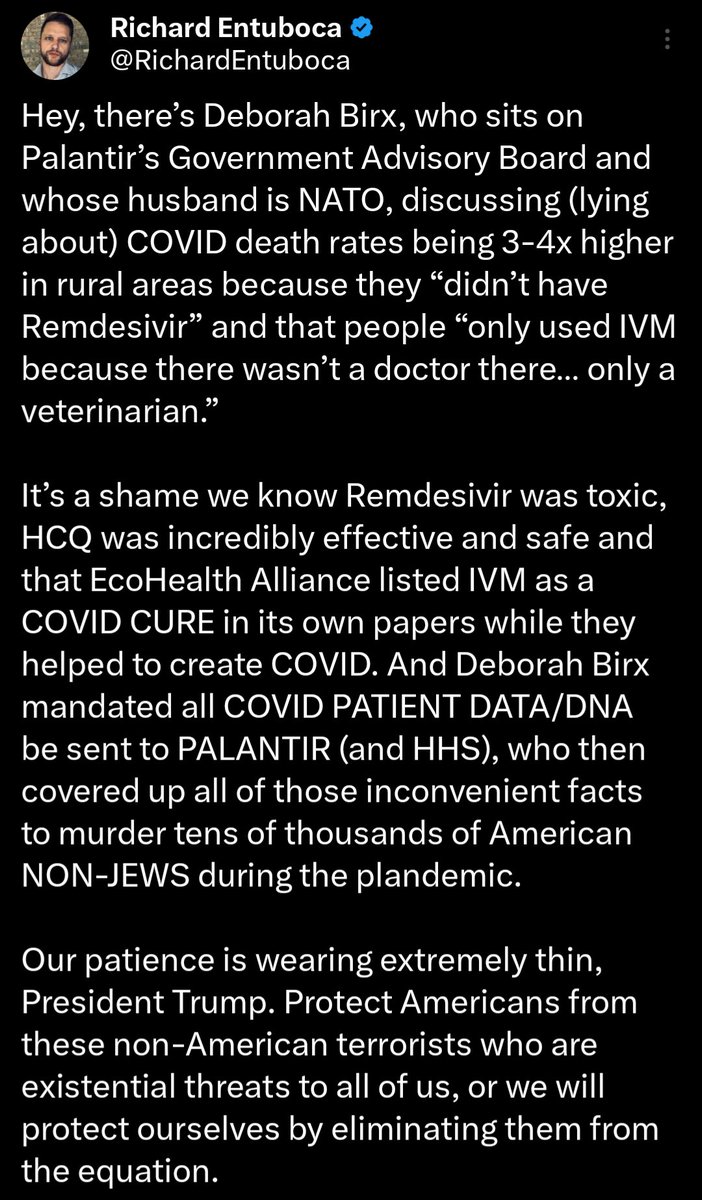 🚨🚨🚨🚨A CALL FOR ACTION🚨🚨🚨🚨 DEBORAH BIRX >> PALANTIR's Govt Advisory Board 💥 Mandated ALL covid patient data and DNA be sent to 🖕🏻PALANTIR🖕🏻 https://t.co/LtMoAH14xJ