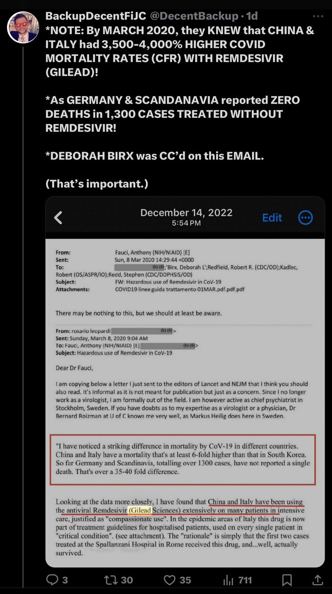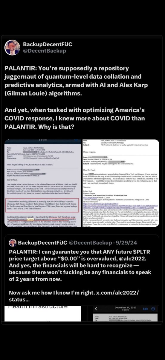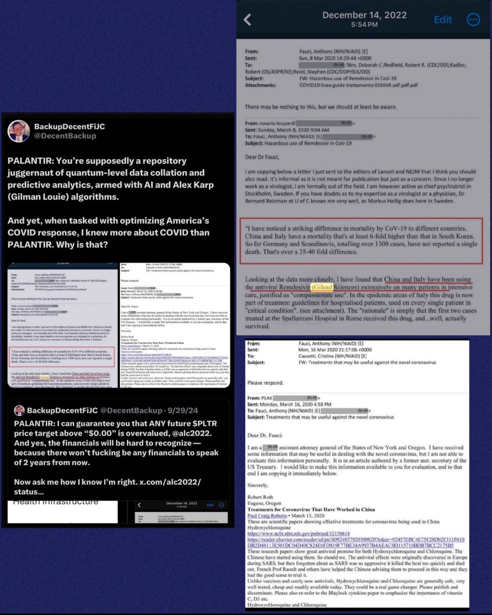 Gosh, it’s a shame that March 8, 2020 email came out saying Remdesivir was ineffective and was killing people… followed by that March 16, 2020 email demonstrating how HCQ was basically a miracle-worker for COVID and that it was remarkably safe. Thankfully, I still have those emails, which Palantir covered up, of course. What a shame.