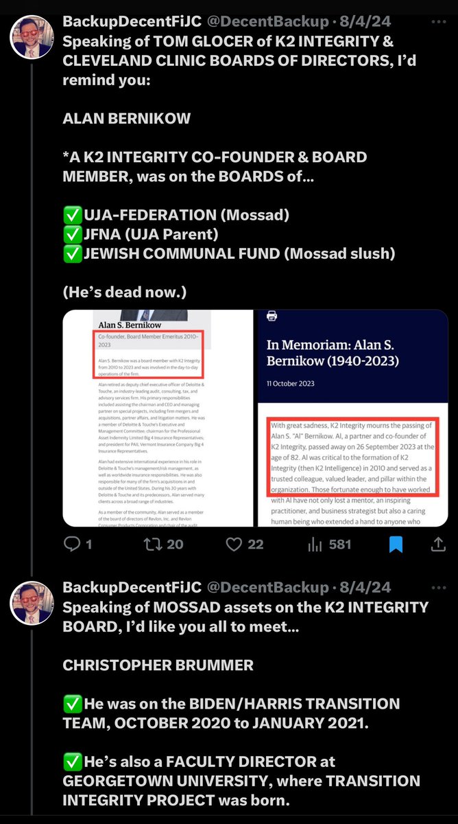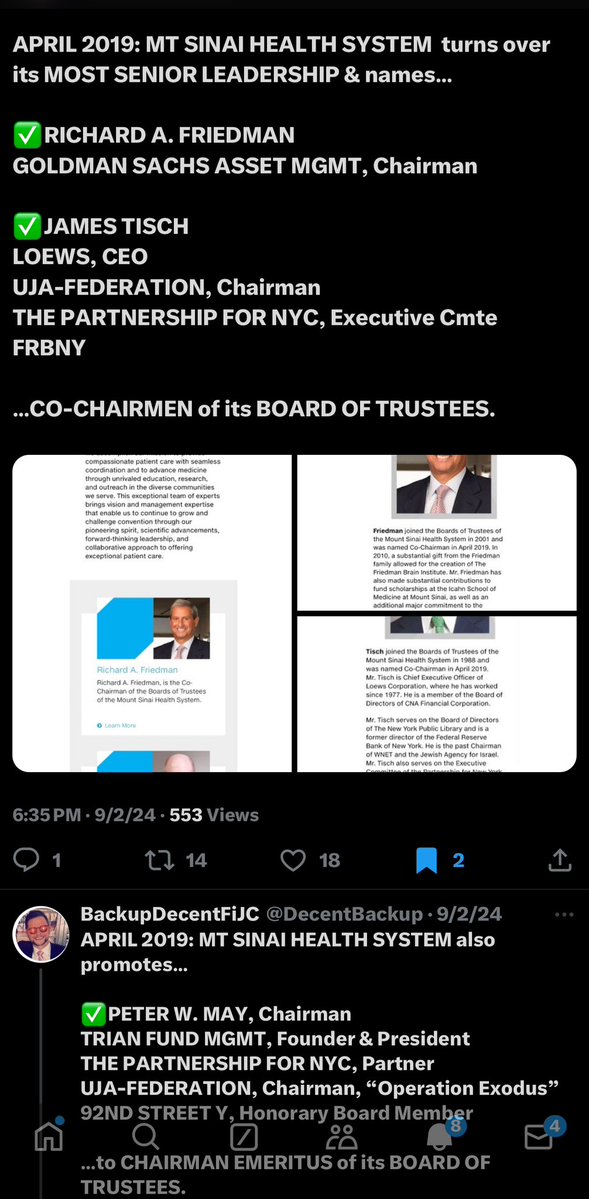 *PALANTIR TREASON and… MURDER?* 👺SHYAM SANKAR Turns out, the COO and EVP of PALANTIR and the CHAIRMAN of GINKGO BIOWORKS are the SAME FUCKING PERSON, folks. Who’da thunk?🤣🤦🏻♂️ 👺PETER W. MAY Turns out, the CHAIRMAN EMERITUS of MOUNT SINAI HEALTH (UJA/Mossad) is also a SENIOR VICE CHAIRMAN of WENDY’S, which is run by TRIAN FUND, where MAY is the PRESIDENT and CO-FOUNDING PARTNER with WENDY’S CHAIRMAN and TRIAN CEO & CO-FOUNDING PARTNER, NELSON PELTZ. *PETER MAY was also the CHAIRMAN of the UJA-FEDERATION (Mossad) “Operation Exodus” campaign, which was linked to the recent SHOOTING of the TWO JEWS in WASHINGTON DC. *At Mount Sinai, Peter W. May works alongside MOUNT SINAI CO-CHAIRMAN, JAMES S. TISCH, the former CHAIRMAN of UJA-FEDERATION, a 9/11 CO-CONSPIRATOR and the FATHER of RECENTLY-APPOINTED NYPD COMMISSIONER, JESSICA L. TISCH. James Tisch was appointed into his current Mount Sinai role at the same time Peter May was named Chairman Emeritus of Mount Sinai Health. I’m sure none of that’ll ever be relevant again, sports fans… at least not until we get to the whole “Carbyne, Palantir, Unit 8200 and NSA espionage collusion” stuff.😏🫡