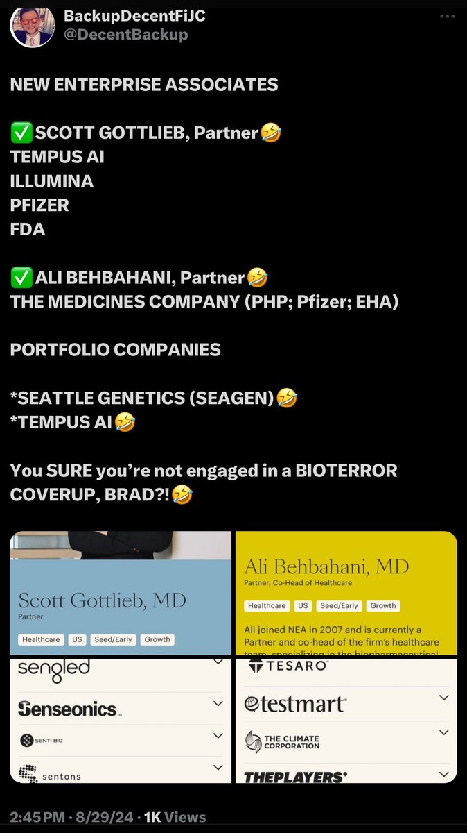 @KimWexlerMAJD Scott Gottlieb (Alvin Krongard) - COVID NEA (IQT), Tempus, Pfizer, Illumina, etc. https://t.co/pb1b6p6mT9