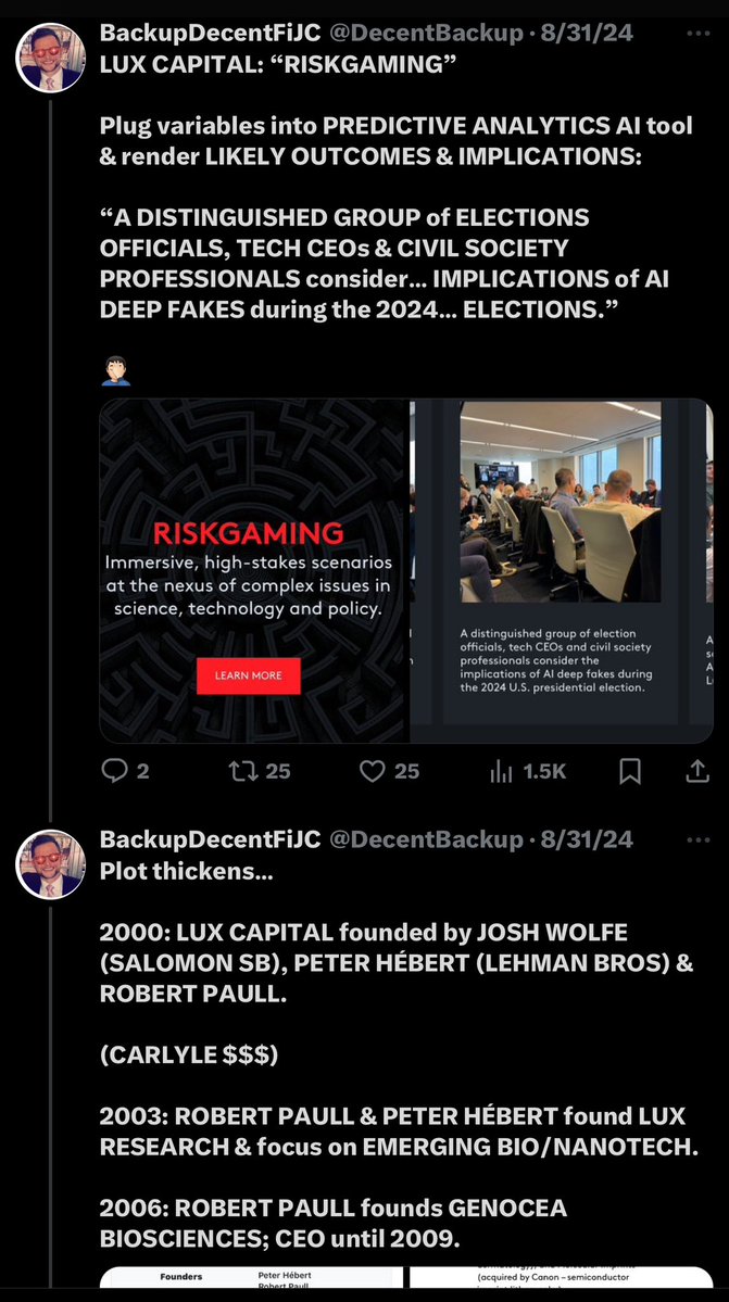 “RISKGAMING” Imagine that. Your CO-INVESTOR, no less.🤦🏻♂️ “A DISTINGUISHED GROUP of… CIVIL SOCIETY PROFESSIONALS consider IMPLICATIONS OF AI DEEP FAKES during the 2024 PRESIDENTIAL ELECTIONS.” El. Oh. Fucking. El.