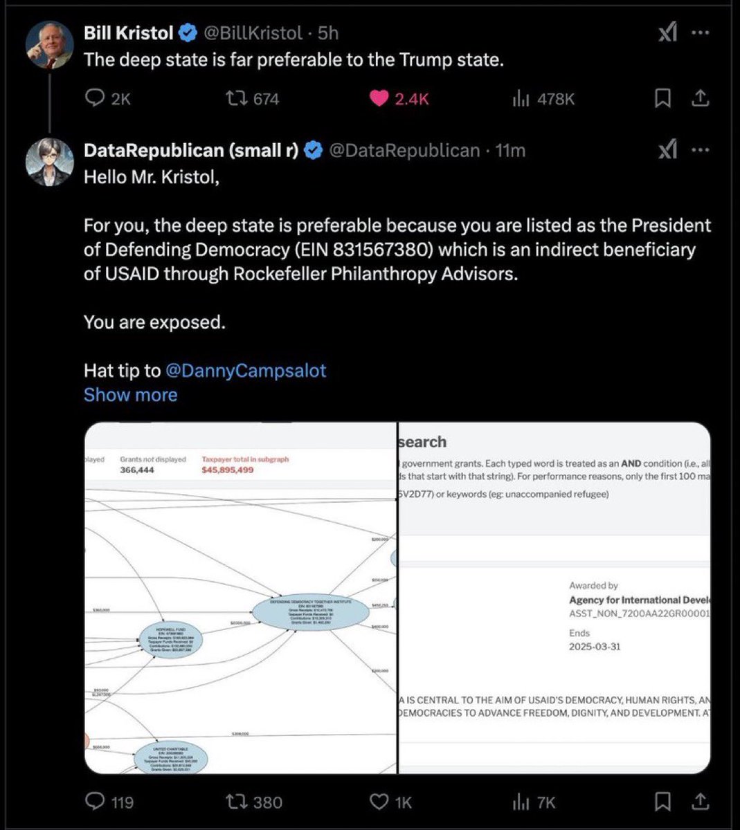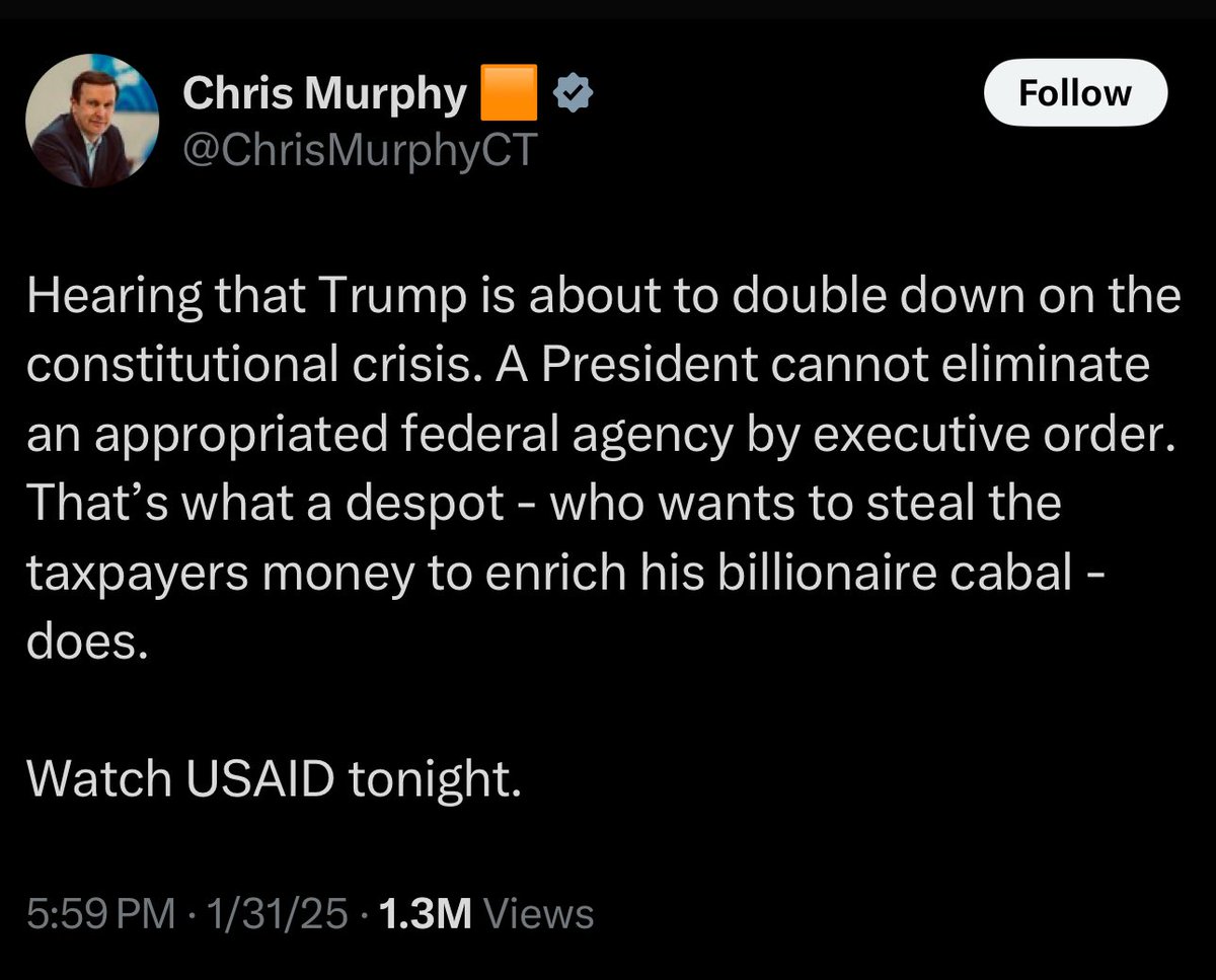 Another important addition. He said initial plans by the Democrats is to have their people at USAID hide the partisan funding under “unimpeachable initiatives”. “They will push back really hard on certain line items that on their face look like reasonable USAID expenditures and hide their political spending under these programs” @elonmusk Looks like the whole thing needs to be thrown out to avoid this from happening.
