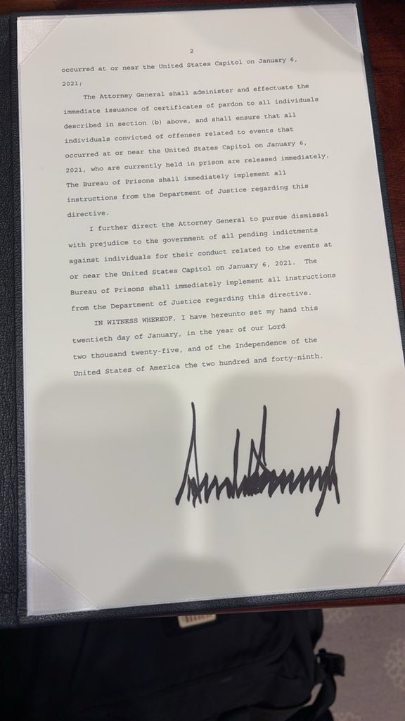Promises Made, Promises Kept… And we are only just starting 🇺🇸🇺🇸🇺🇸 President Trump has just signed an executive order granting full pardons to about 1,500 J6 prisoners! https://t.co/W5iJh3jjXx