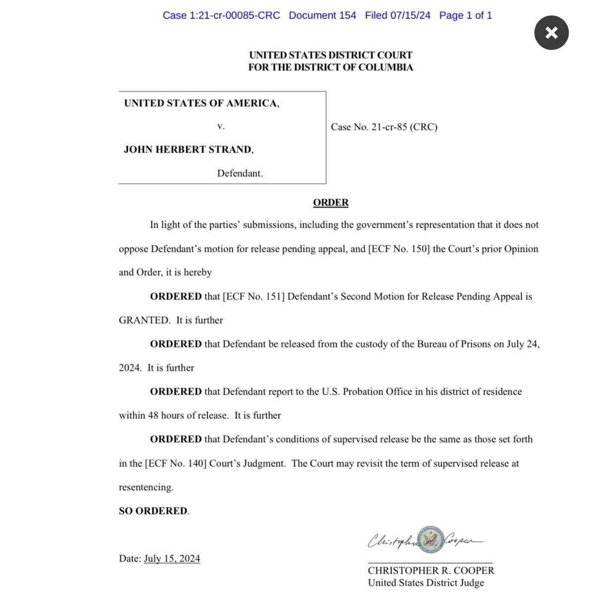 IT’S OFFICIAL — I am being released from prison after my Motion for Release was approved by the Judge. I am so thankful for everyone who supported me during this difficult time. #JusticeforJ6! https://t.co/icnTpdcRS5