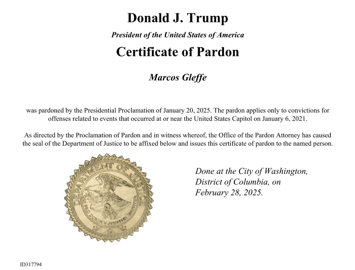 Look what I received via email today. My official certificate of pardon. 🥳🥳🥳 https://t.co/Y2sd62vJc8