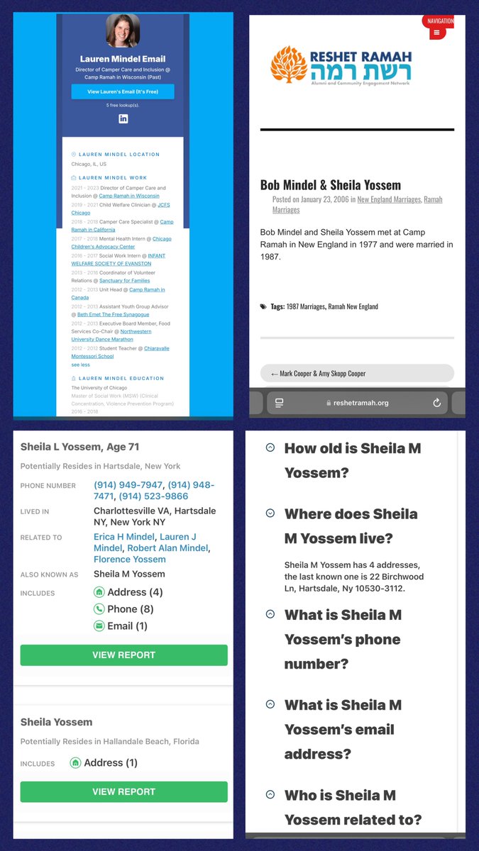 Oh, look. Erica and Lauren’s parents, ROBERT “BOB” ALAN MINDEL and SHEILA M YOSSEM, even MET at the NEW ENGLAND BRANCH of that SAME JEW KIDS CAMP where LAUREN MINDEL works(ed) in WISCONSIN. Imagine that! 👺CAMP RAMAH