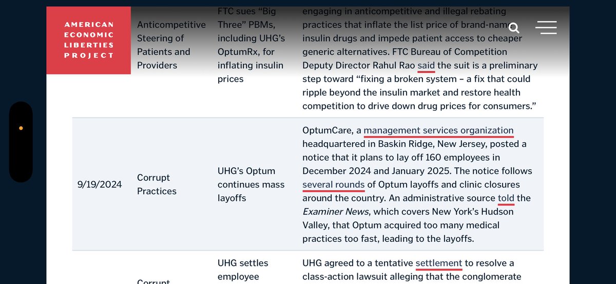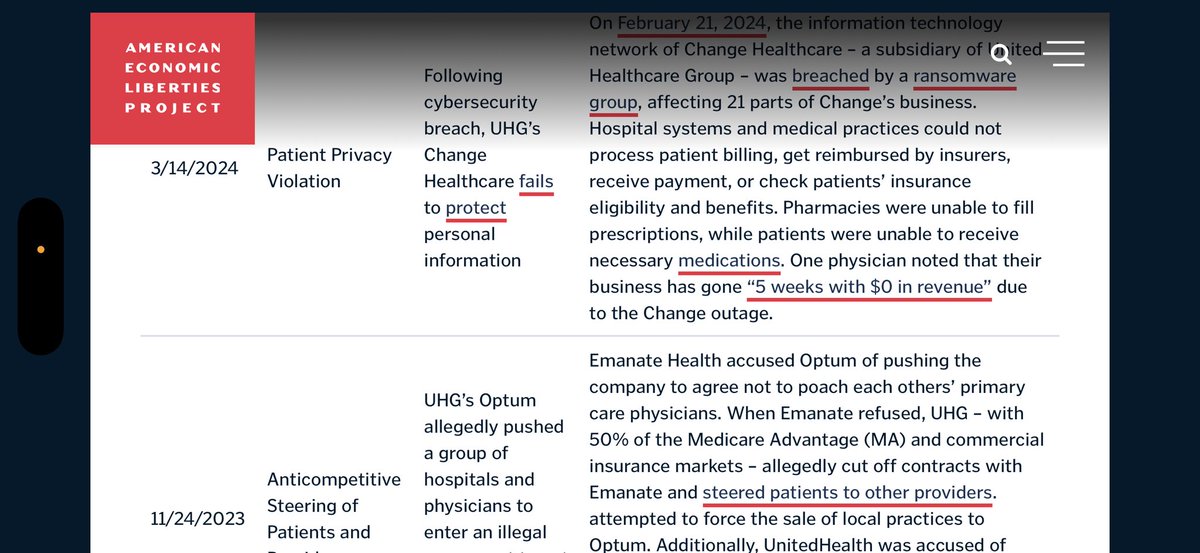 💥Major shoutout to the AMERICAN ECONOMIC LIBERTIES PROJECT for this ABUSE SUMMARY report regarding the egregious practices by UNITEDHEALTH GROUP over the last several YEARS. (Spoilers: It’s worse than you think it is.) https://t.co/YNe8brUVmB