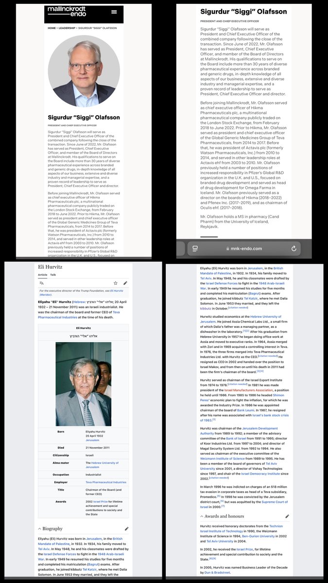 SIGURDUR “SIGGI” OLAFSSON, PRESIDENT & CEO of MALLINCKRODT-ENDO was PRESIDENT & CEO of GLOBAL GENERIC MEDS at TEVA PHARMACEUTICALS. (TEVA = “LIKUD PHARMA”) ELI HURVITZ, CHAIRMAN & CEO of TEVA, was CHAIRMAN of BANK LEUMI and THE WEIZMANN INSTITUTE and DIRECTOR of BANK OF ISRAEL. https://t.co/i9qznwss1j