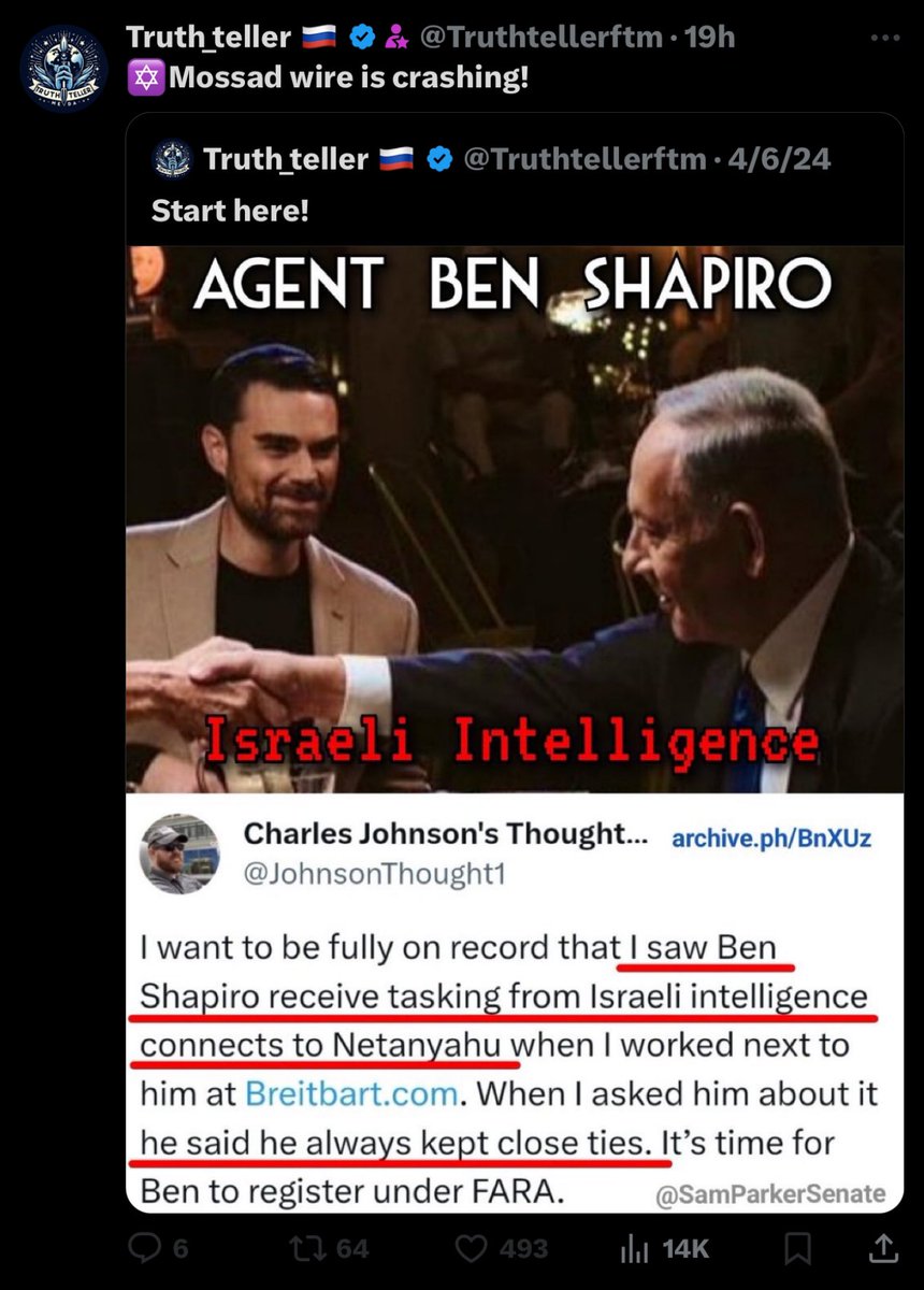 1/ You know who was a harsh critic of more social media censorship in order to protect israel—especially on Tiktok—and would have opposed it? Charlie Kirk You know who opposed the ADL's "hate speech" characterizations & criticized Jonathan Greenblatt for wanting to impose more censorship? Charlie Kirk You know who ran the largest youth organization in the country, with 2,100 college & high school chapters and over 250,000 members? Charlie Kirk You know who was the most influential & organized leader of youth in the country? Charlie Kirk You know who stood in the way of the massive social media propaganda campaign to boost Brilyn Hollyhand, the 18-yr old ultra unironic pro-israel Charlie Kirk clone? Charlie Kirk You know who overshadowed the recent massive youth influencer operation israel started rolling out in perfect coordination with its acquisition of Tiktok & Ben Shapiro's boost of Brilyn Hollyhand? Charlie Kirk You know who would have criticized Benjamin Netanyahu for coming to American soil and calling for israeli weaponization of social media against israel's enemies (i.e. anyone who criticizes israel)? Charlie Kirk You know who wouldn't have bought into the propaganda blitz by total israel-first shills & would have continued platforming high-level, prominent criticism of israel (albeit limited)? Charlie Kirk If you suspect a conspiracy behind the assassination of Charlie Kirk, but are struggling with motive and/or timing, what do you think Charlie Kirk might say?