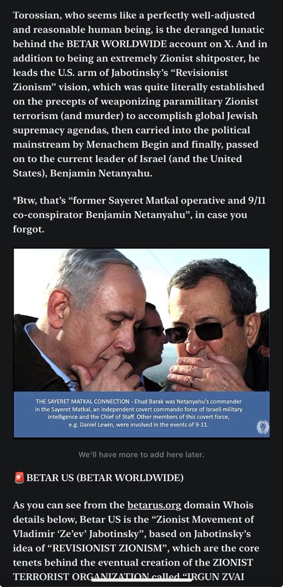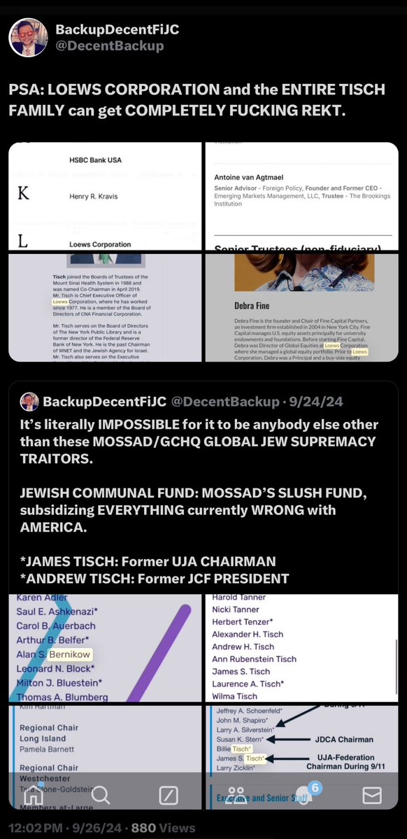 FEMA and LIKUD *UPDATE: As it turns out, FEMA was literally conspiring with ISRAEL’S LIKUD PARTY, and acting DIRECTLY against the best interests and safety of AMERICAN CITIZENS in Western NC… …and did so BEFORE, DURING and AFTER their GEO-ENGINEERED Hurricane Helene TERRORIST ATTACK and DISASTER RELIEF SABOTAGE. World Zionist Congress: The ZOA Coalition “NORTH CAROLINA COALITION FOR ISRAEL” and “BETAR US” Sloan Rachmuth (Amy Rosenthal) and Ronn Torossian (Todd Terrell, United Cajun Navy, Marco Rubio [GMJF/Braman/ISIS], Frank Avallone, Patriot Survival Solutions, International Green Energy Council & DataRepublican.) This is the Ze’ev Jabotinsky “militant Zionist” terrorist wing of IRGUN/HERUT… …aka, LIKUD. @fema @DHSgov @DOGE_DHS @DHSOIG @POTUS @AshevilleNCgov *No excuses at this point. You have the receipts and the PROOF that EVERYTHING I’m saying is correct. The American People REFUSE to be SITTING FUCKING DUCKS for ISRAELI TERRORISM and sit by as THESE JEW SUPREMACISTS SEND YOU OUT TO “SQUASH DISSENTING AMERICANS” to PROTECT THEM FROM ACCOUNTABILITY FOR THEIR TREASON AND TERRORISM. *You ALSO have their UNDER OATH ADMISSIONS of their PRE-COORDINATED PLAN TO SABOTAGE DISASTER RELIEF RESPONSE for “TRUMP SUPPORTERS”. *Do your fucking jobs to protect American citizens from these ISRAELI terrorists OPERATING ON OUR SHORES, or WE WILL PROTECT OURSELVES from THEM. Then, WE WILL PROTECT OURSELVES from YOU. *I’ll even do you guys ANOTHER solid and include a link to my MOST RECENT SUBSTACK ARTICLE I just published on LIKUD, ZE’EV JABOTINSKY, “Revisionist Zionism”, “militant Zionism”, BETAR US, Ronn Torossian, Menachem Begin, Irgun/Herut/Leumi, Haganah (IDF, Mossad, Shayatet-13, Sayeret Matkal, etc.) and LEHI (“Stern Gang”), which has ALL these receipts on LIKUD and more. For your reference, just in case you guys ever decide to start doing your fucking JOBS and protect the American People from ENEMIES FOREIGN AND DOMESTIC: https://open.substack.com/pub/decentfijc/p/likud-americas-gravest-threat-ever?r=32gbmm&utm_medium=ios 💥NOTE: A MAJOR shoutout to @GenXGirl1994 on her “WZC: The ZOA Coalition” receipts, which tie up the LAST FEW REMAINING LOOSE ENDS that I was missing on Hurricane Helene!