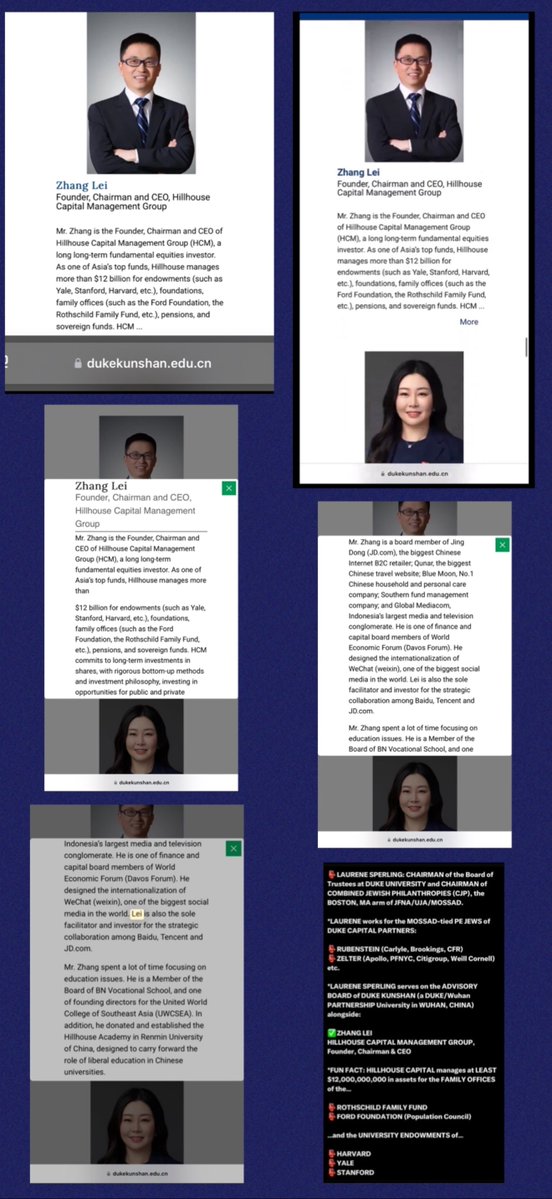 Oh, btw… allow me to introduce you all to the LEAD DIRECTOR of THERMO FISHER (SCOTT SPERLING) and the CHAIRMAN of CJP, aka… “BOSTON MOSSAD” (LAURENE SPERLING). Thermo Fisher was kind enough to provide the GLOBAL PLANDEMIC with all the PCR tests one world could ever fucking need. Huge shoutout to TF!!! 🚨PS: Laurene Sperling is also the CHAIRMAN of the BOARD OF TRUSTEES of DUKE UNIVERSITY in RALEIGH-DURHAM, NC, and sits on the ADVISORY BOARD of DUKE KUNSHAN UNIVERSITY in WUHAN, CHINA. Ohhhhh. BOSTON AND RALEIGH-DURHAM. I get it now. THAT makes sense. (Fuck you, Zachary Goldberg.🖕)