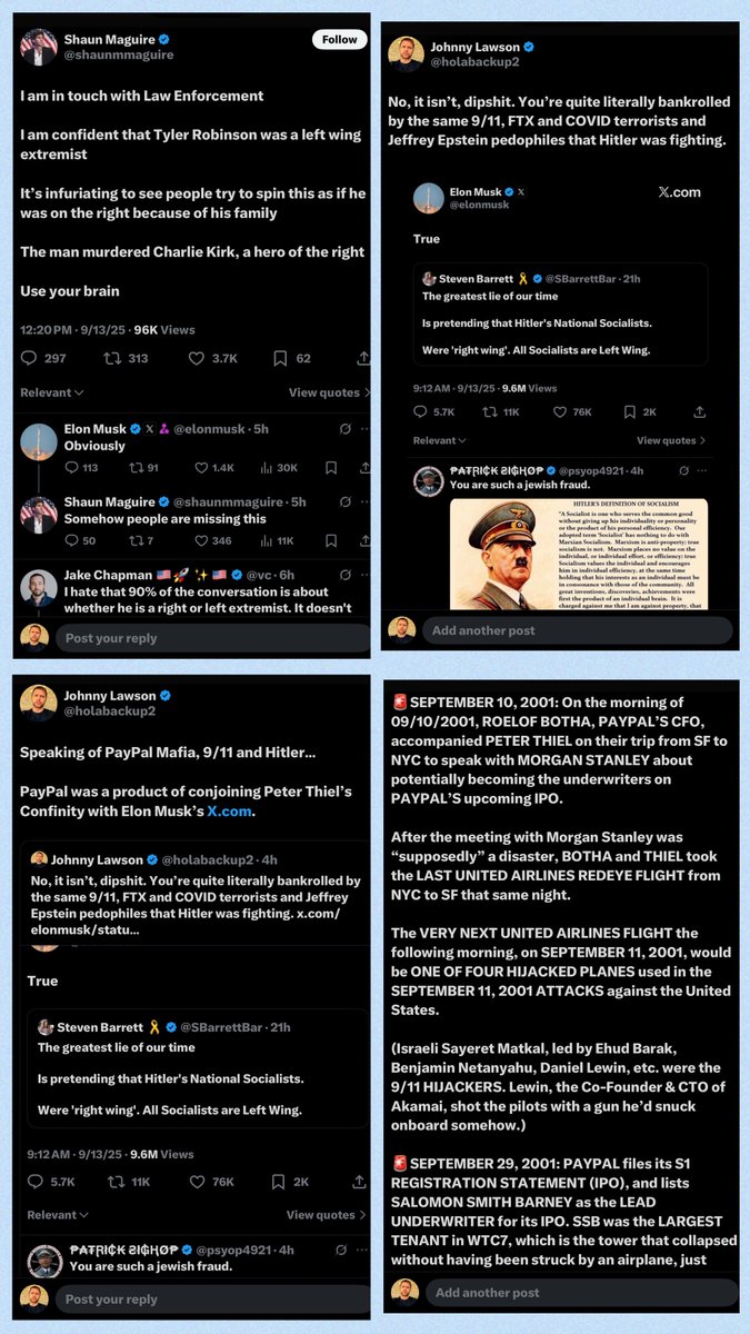 @7SEES_ @KanekoaTheGreat, if you have the balls to actually LOOK at mountains of evidence, this thread & the embedded threads PROVE Charlie Kirk’s “best friends” are working with FOREIGN INTERESTS to cover up Kirk’s murder. You’re welcome. (I don’t expect you to acknowledge seeing it.)