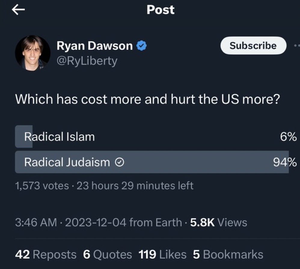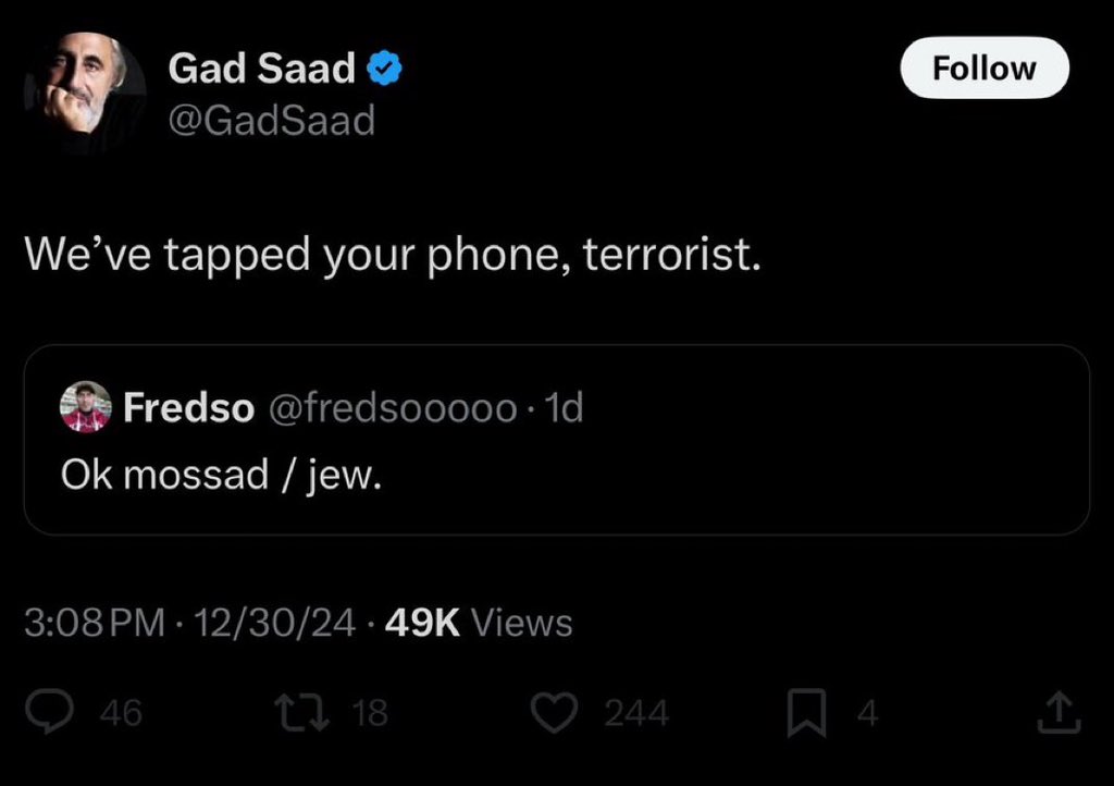 🚨I would like to thank ✡️ Mossad agent Gad Saad for posting his public poll where 3.3 million plus people voted and the majority decided that the Jews are responsible for the majority of global issues. Thank you Sad for performing this civic duty. https://t.co/DNWUbSczj4